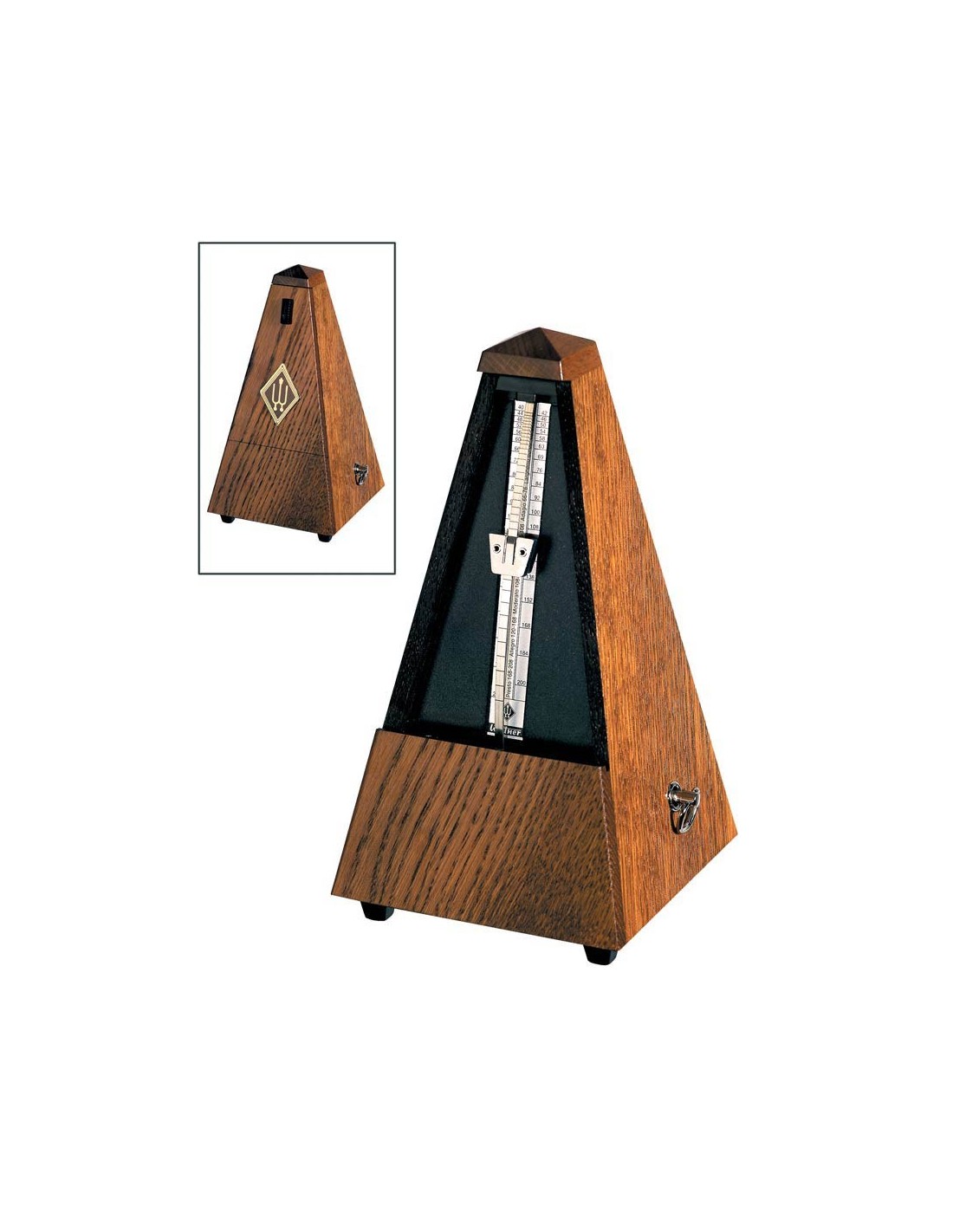 metronome, pyramid shaped, wooden casing, without bell, mat, oak brown