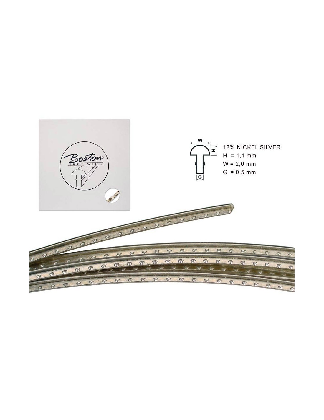 fretwire, 5 m., 12% nickel silver, h=1,1 w=2,0 g=0,5mm, alternative for 6220