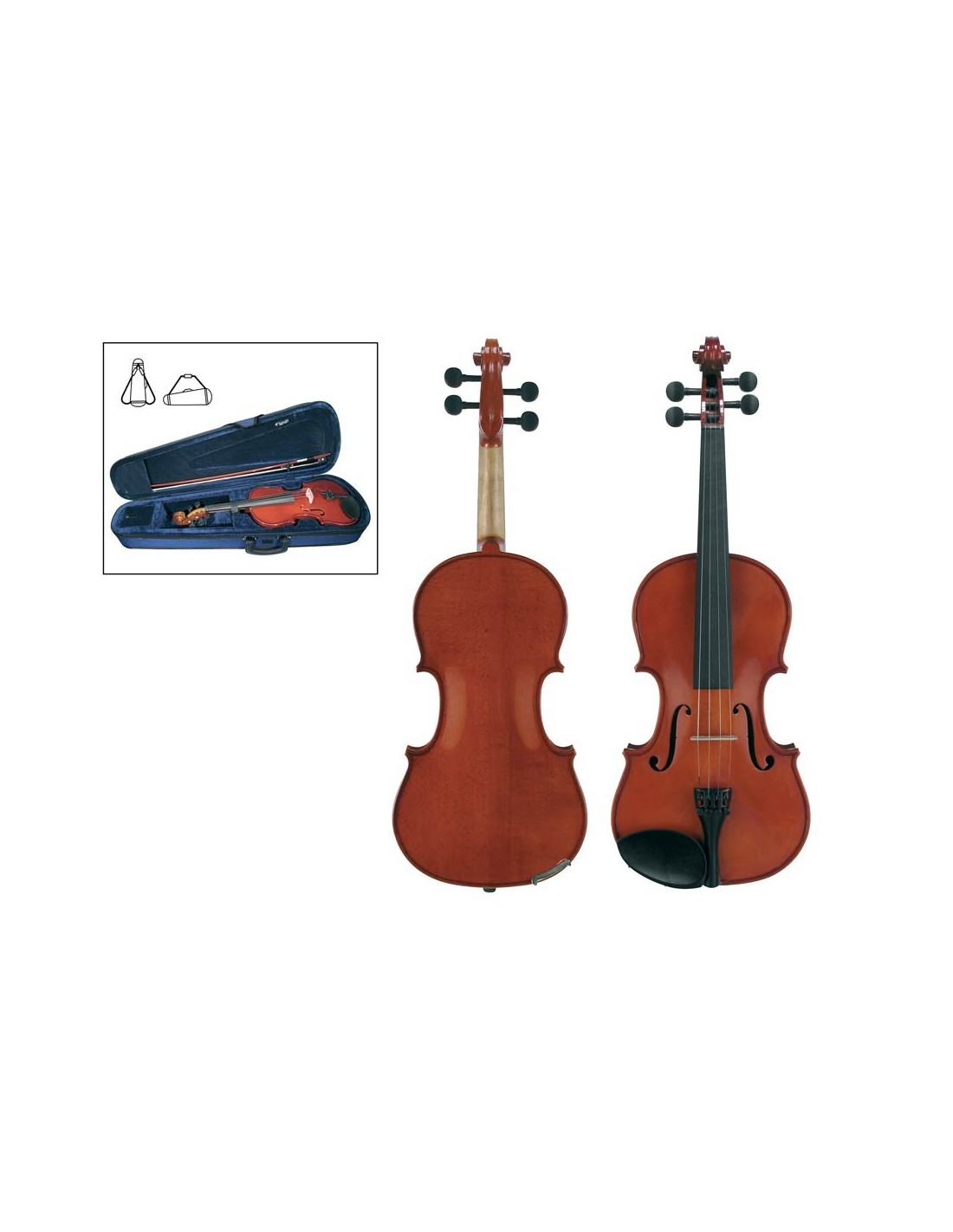 violin outfit 1/8, all solid, nitro varnish, ebony fittings, finetuner tailpiece, case, bow