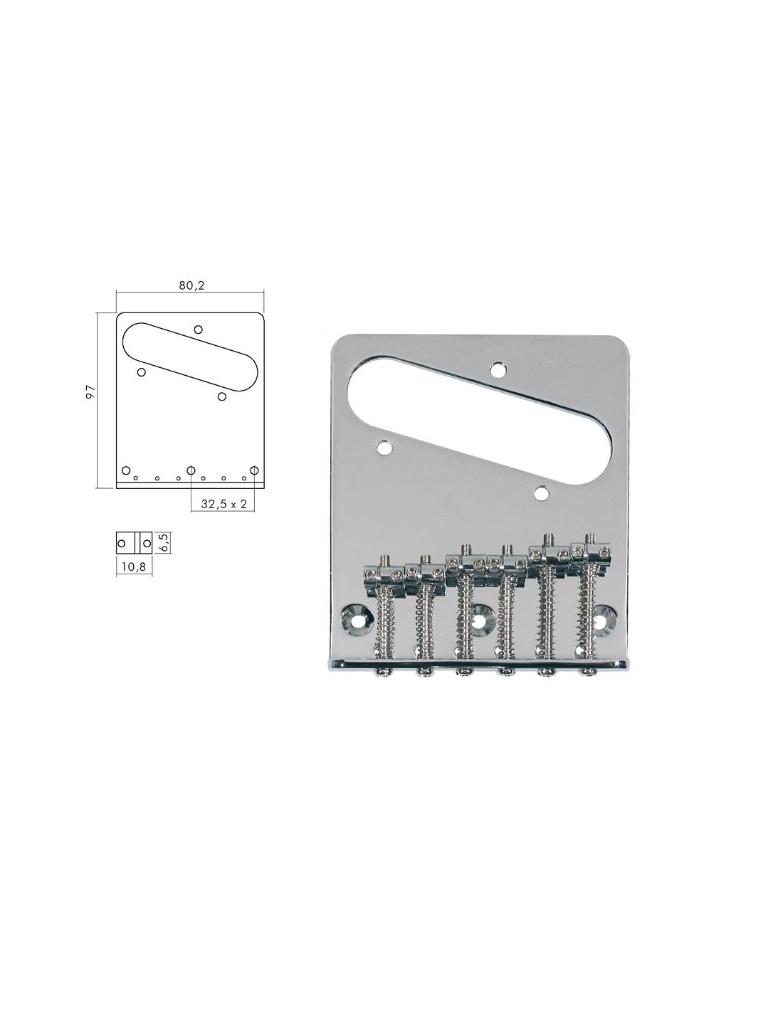 bridge-tailpiece, Teaser, grooved saddles, flat plate, strings-in-bridge or through-body, chrome