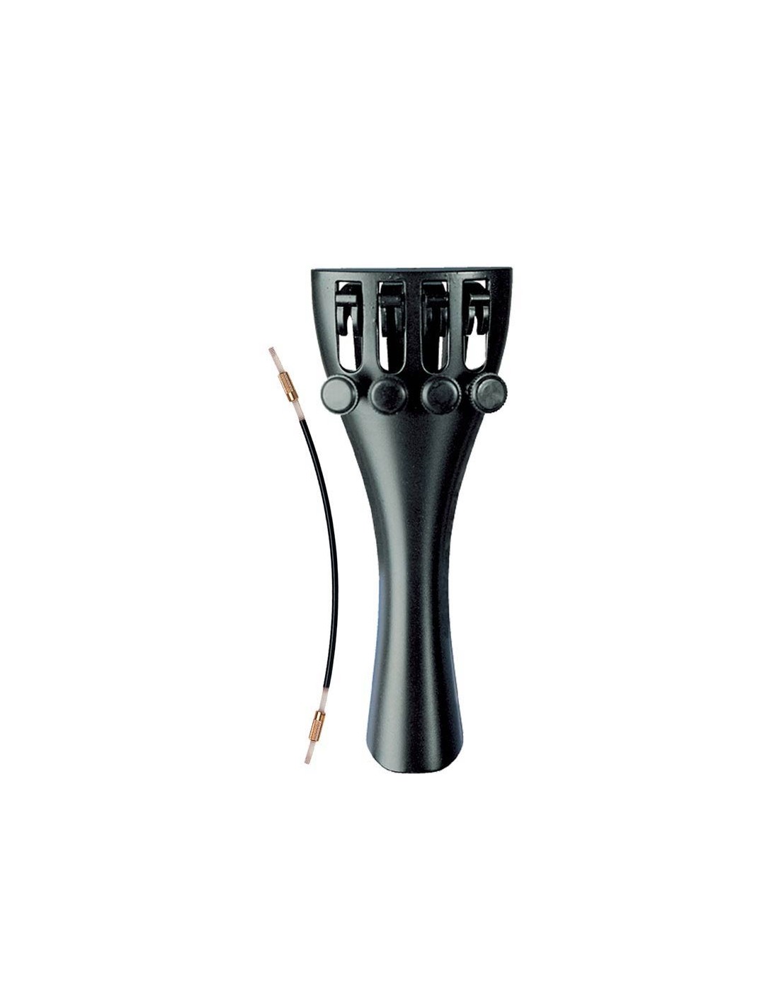 violin tailpiece, 1/8, synthetic, black, with 4 finetuners