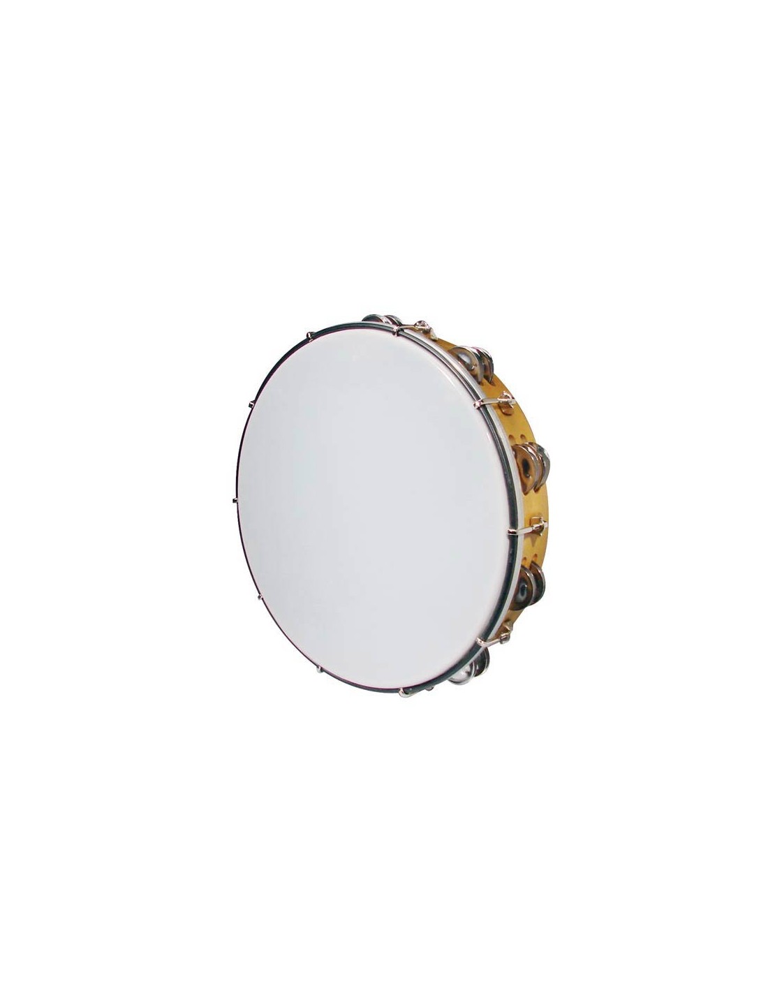 tambourine, plastic drum head, 12", 10 x 2 zils, wood grain plastic, tunable