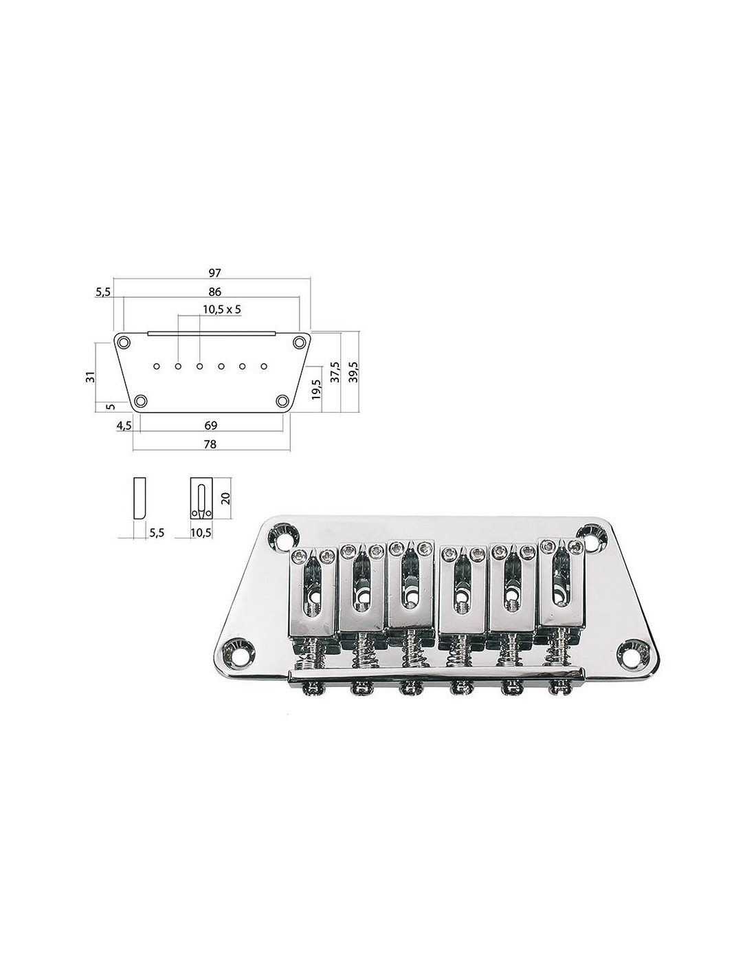 bridge-tailpiece, Stallion, pitch 10,5mm, strings though body, chrome