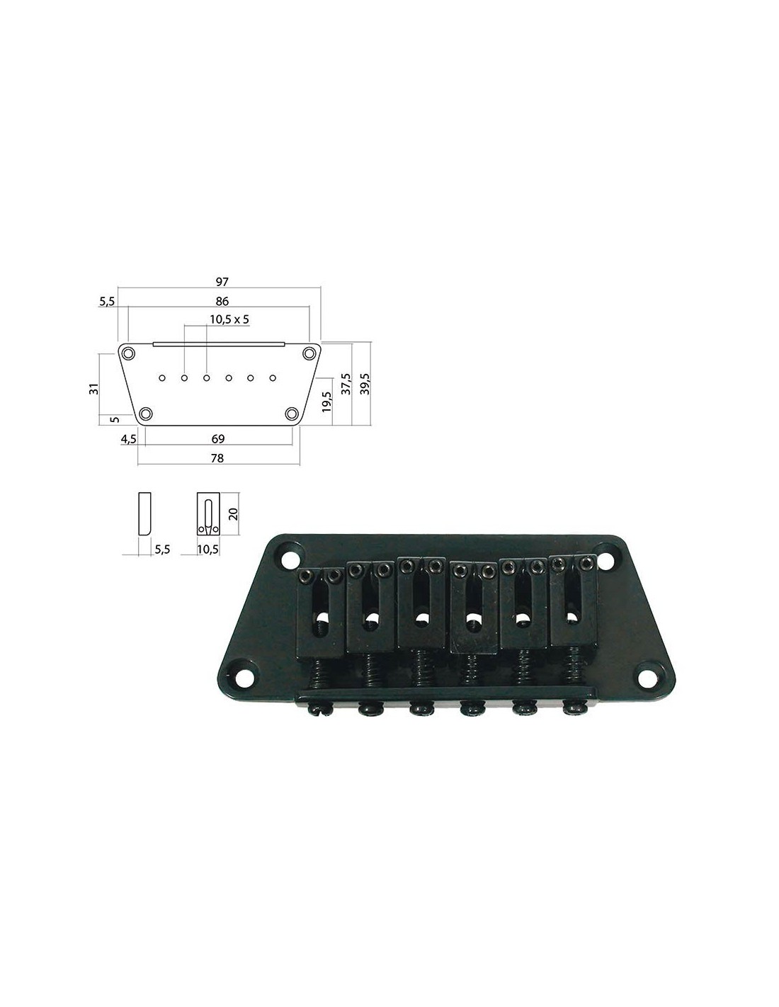bridge-tailpiece, Stallion, pitch 10,5mm, strings through body, black