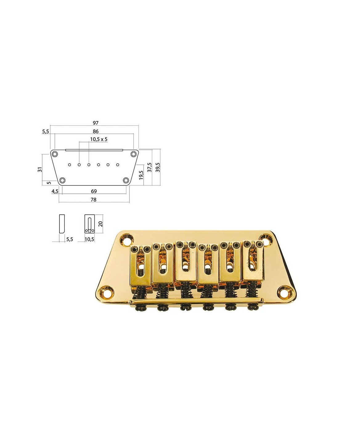bridge-tailpiece, Stallion, pitch 10,5mm, strings through body, gold