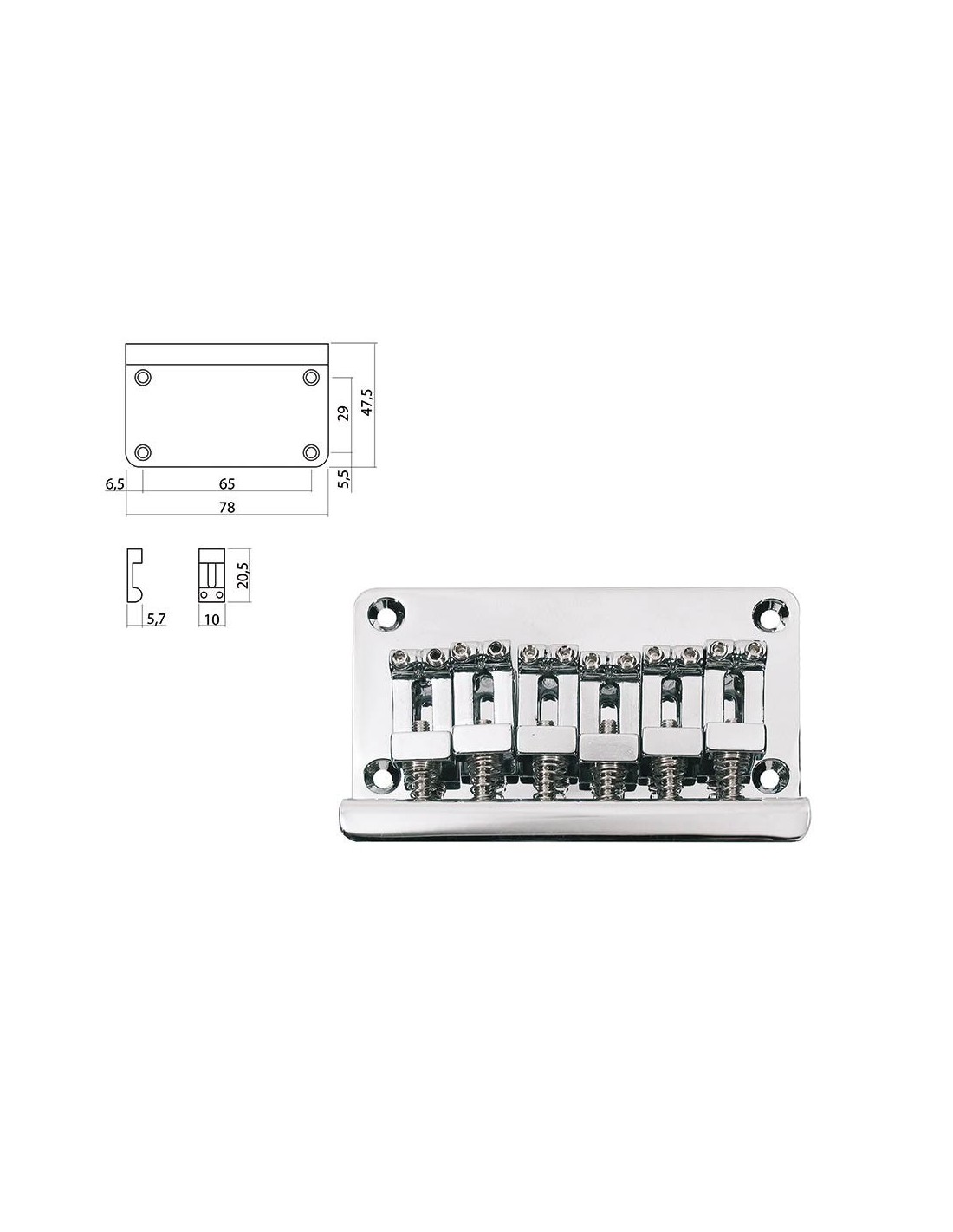 bridge-tailpiece, Stallion, pitch 10,0mm, strings through bridge, chrome