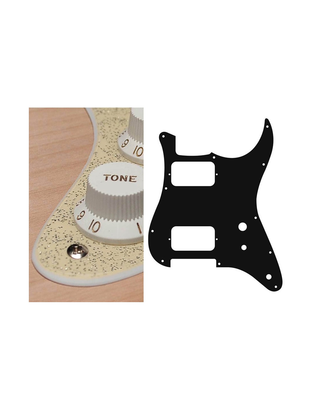 pickguard, Stallion, HH, 2 pot holes, toggle switch, 2 ply, sparkling gold