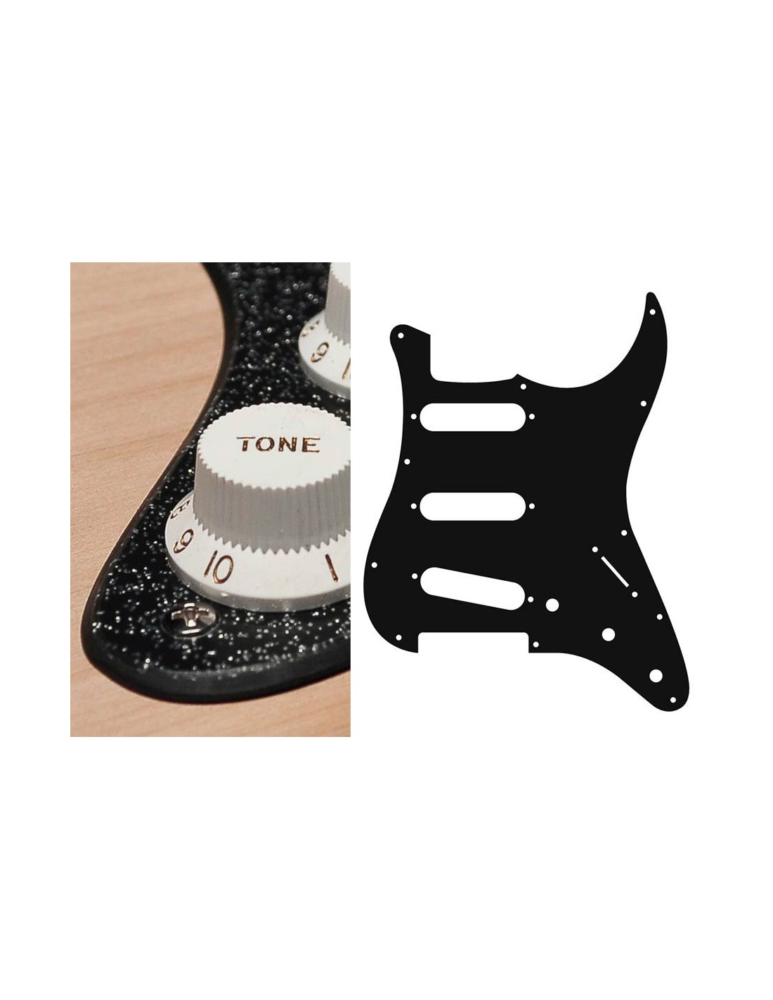 pickguard, Stallion, standard, SSS, 3 pot holes, 3-5 switch, 2 ply, sparkling black