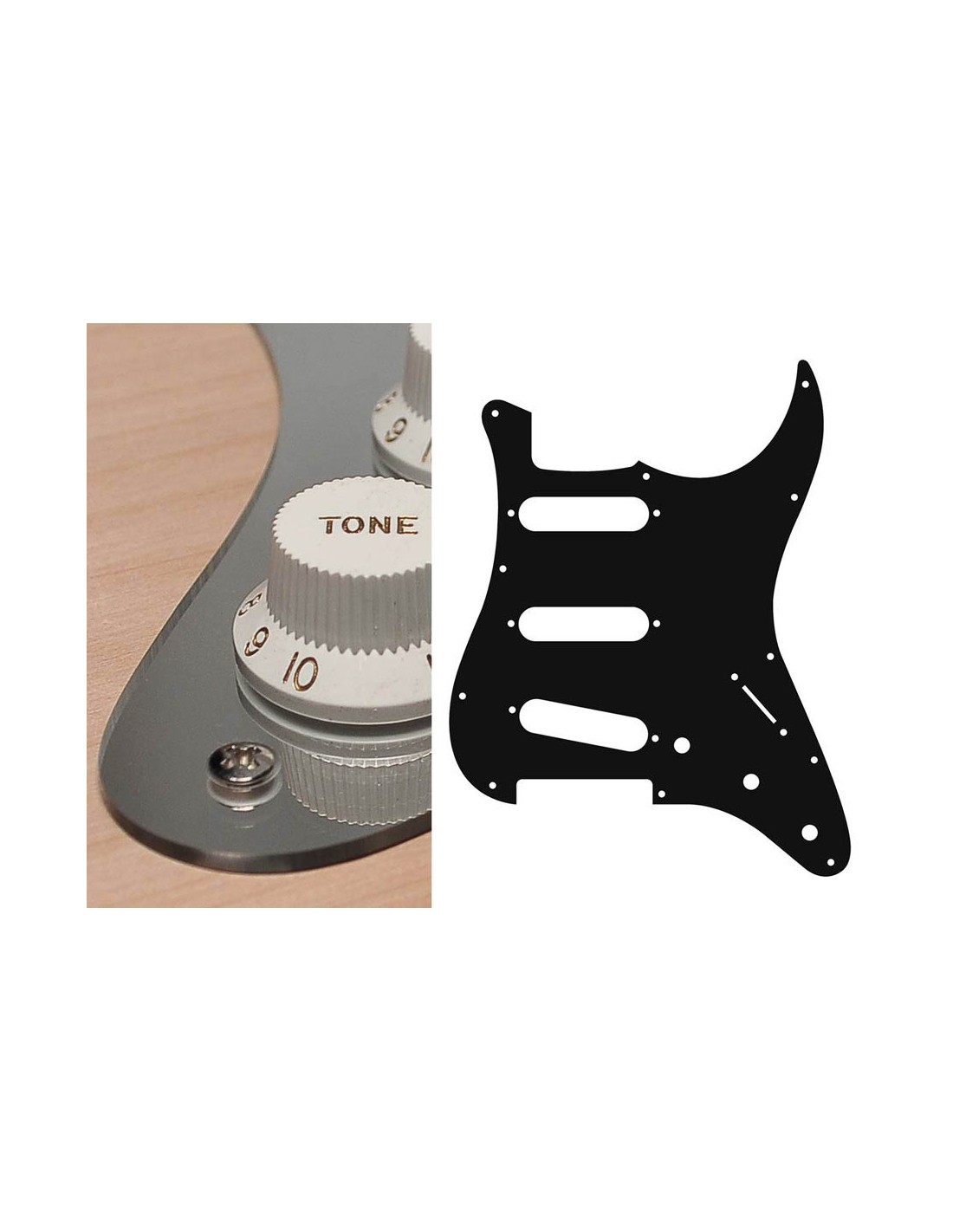 pickguard, Stallion, standard, SSS, 3 pot holes, 3-5 switch, 2 ply, mirror chrome