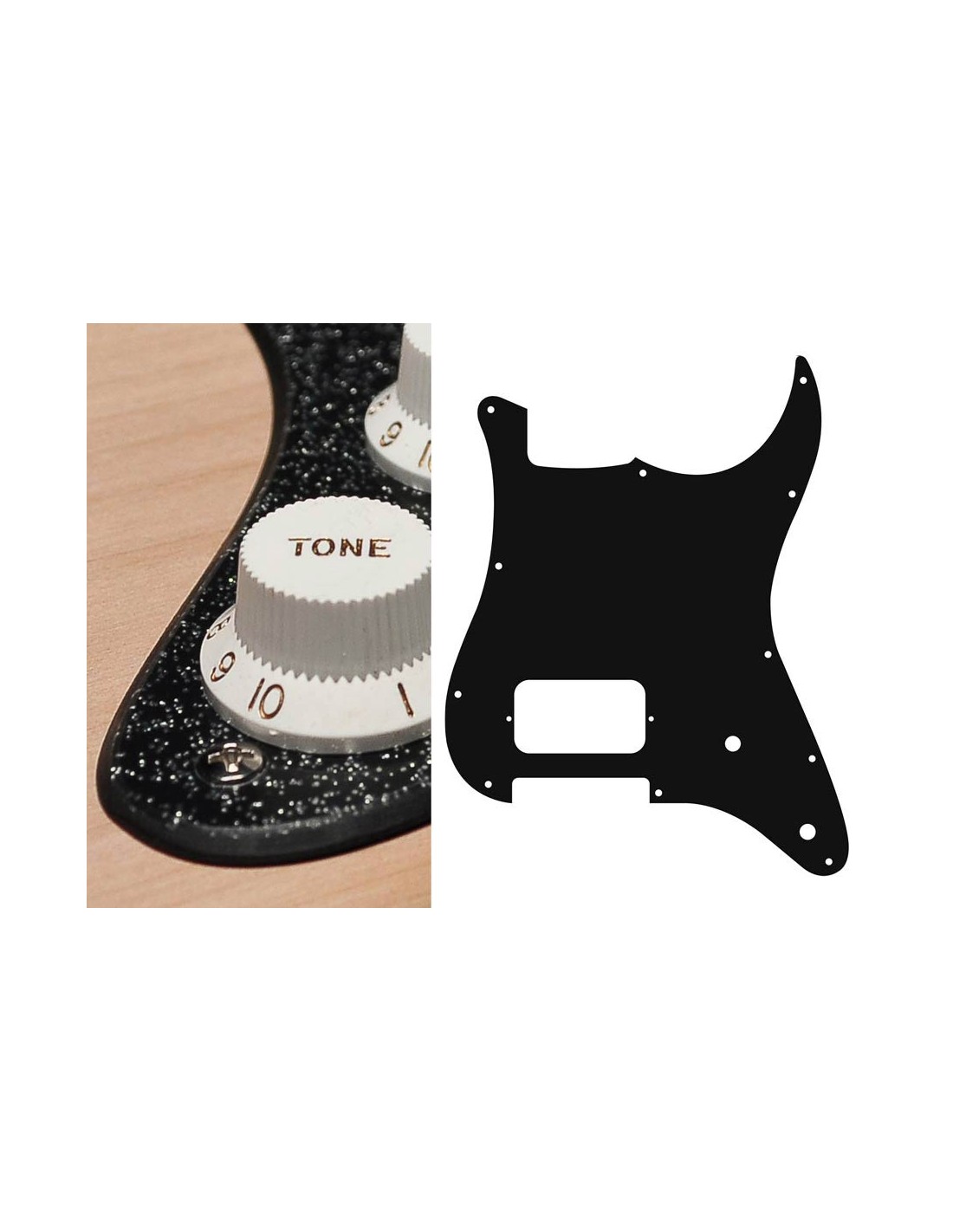 pickguard, Stallion, H, 2 pot holes, 2 ply, sparkling black
