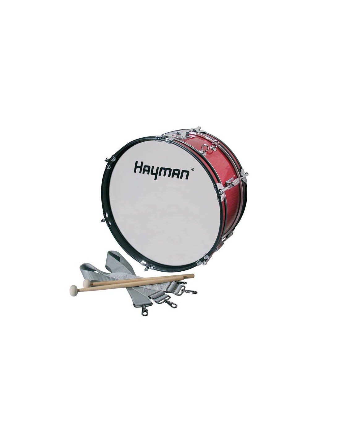 junior marching bass drum, red, with straps, 16 inch, 7inch deep