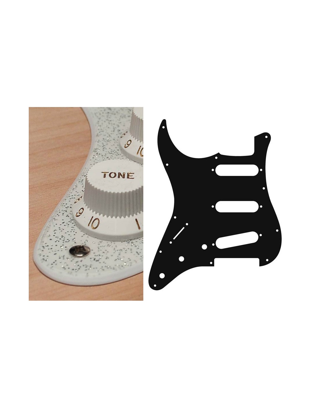 pickguard, Stallion, standard, SSS, 3 pot holes, 3-5 switch, lefthanded, 2 ply, sparkling silver