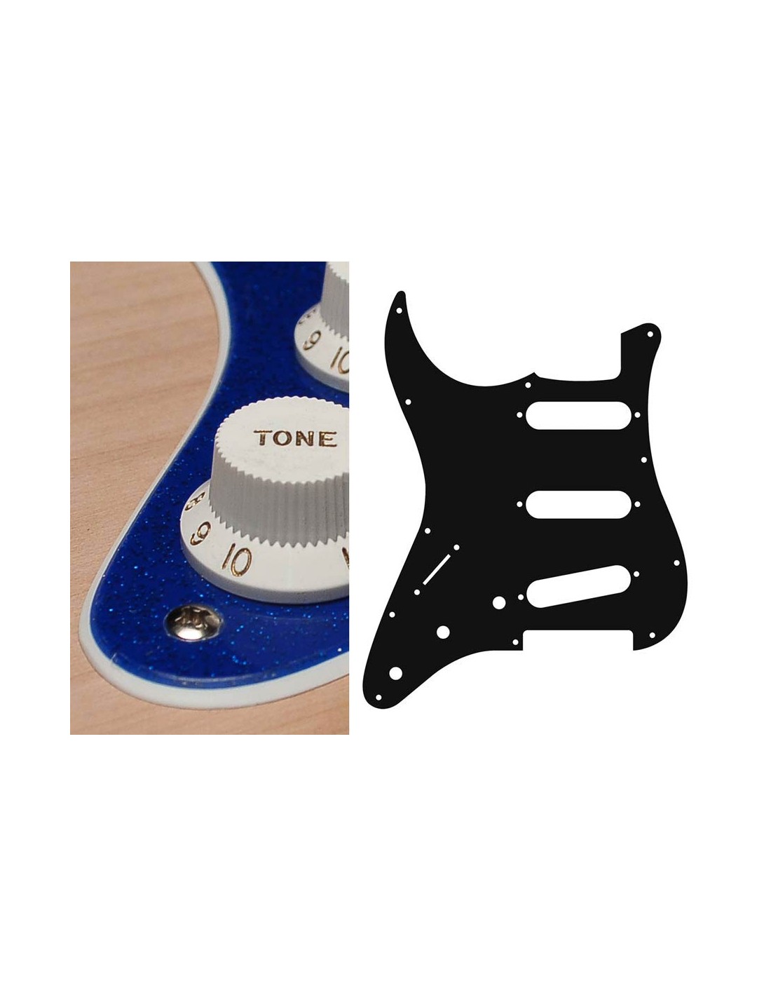 pickguard, Stallion, standard, SSS, 3 pot holes, 3-5 switch, lefthanded, 2 ply, sparkling blue