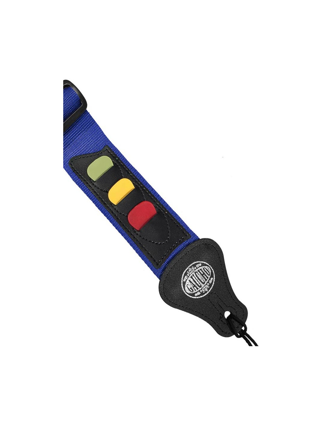 guitar strap, with 3 pick holders, cobalt blue nylon