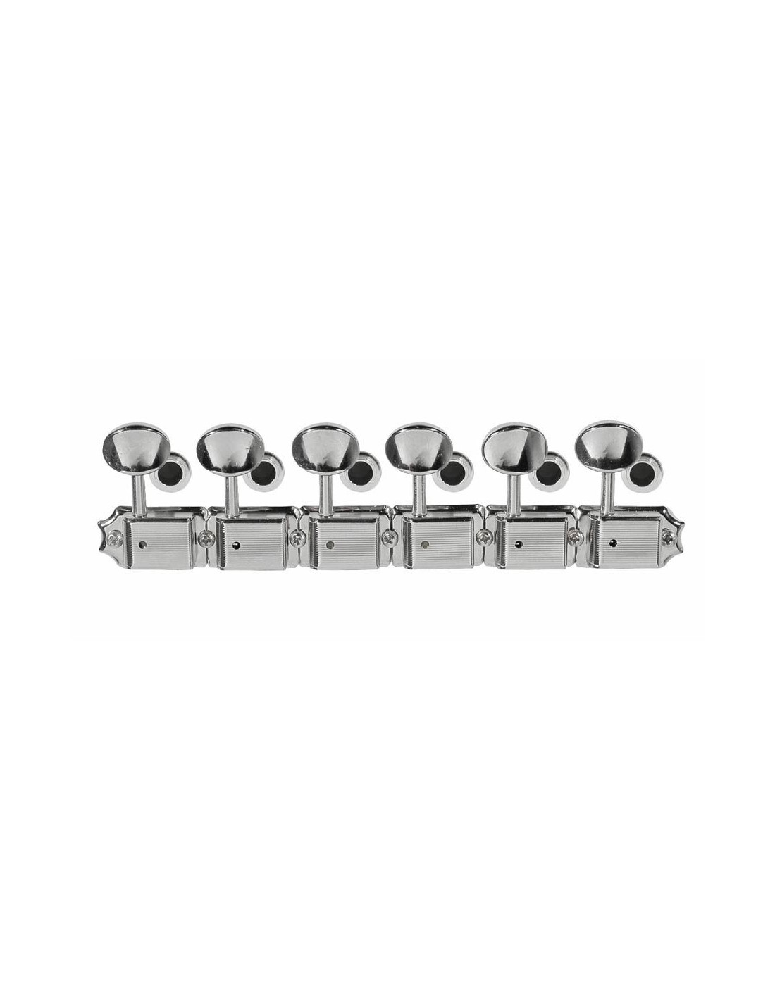 Set of six tuning machines for use on American Vintage, Classic and Road Worn series Telecaster and Stratocaster models. Bushings and mounting hardware included.