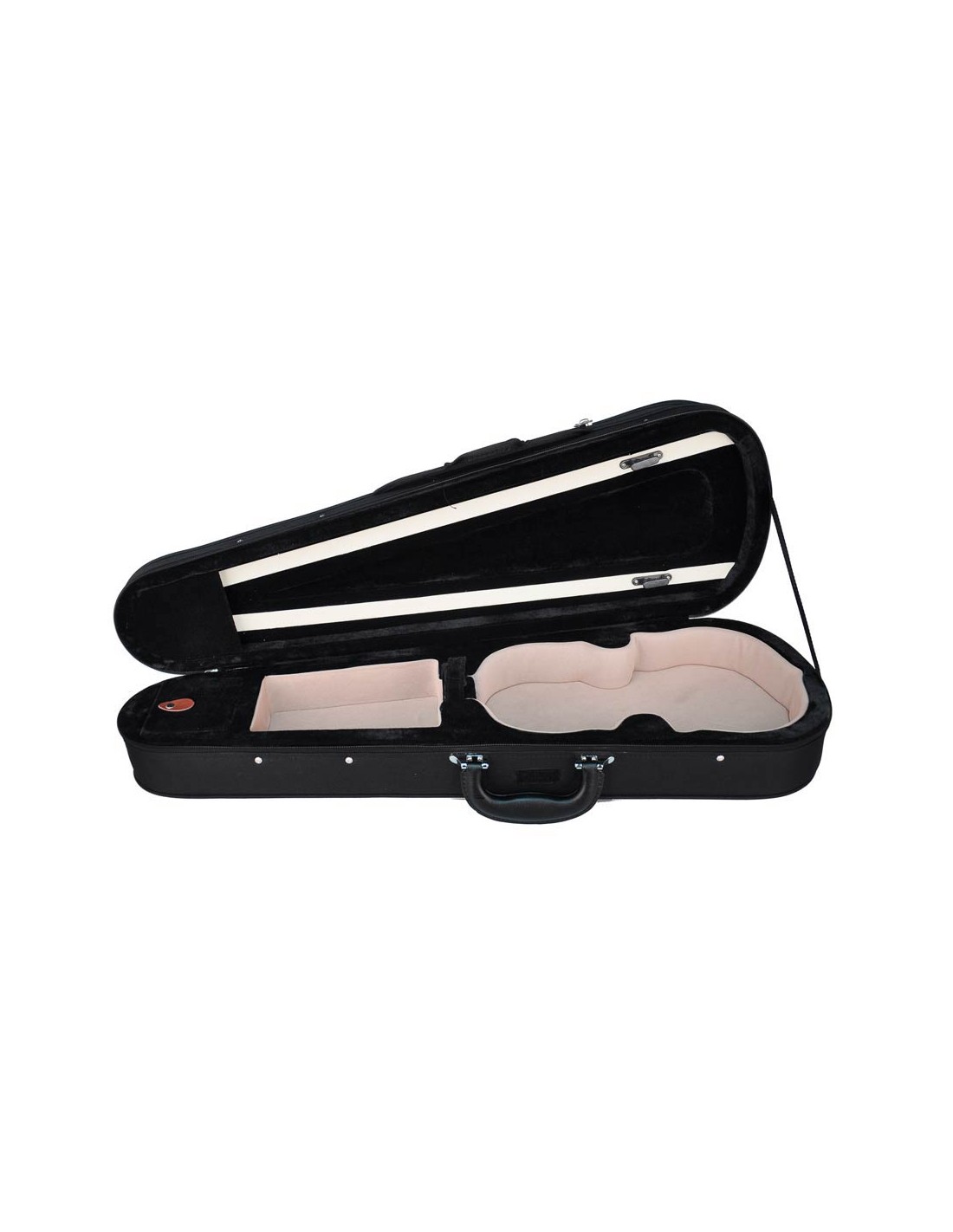 violin case 1/16, shaped, 2 straps, black, black plush interior, YKK zipper