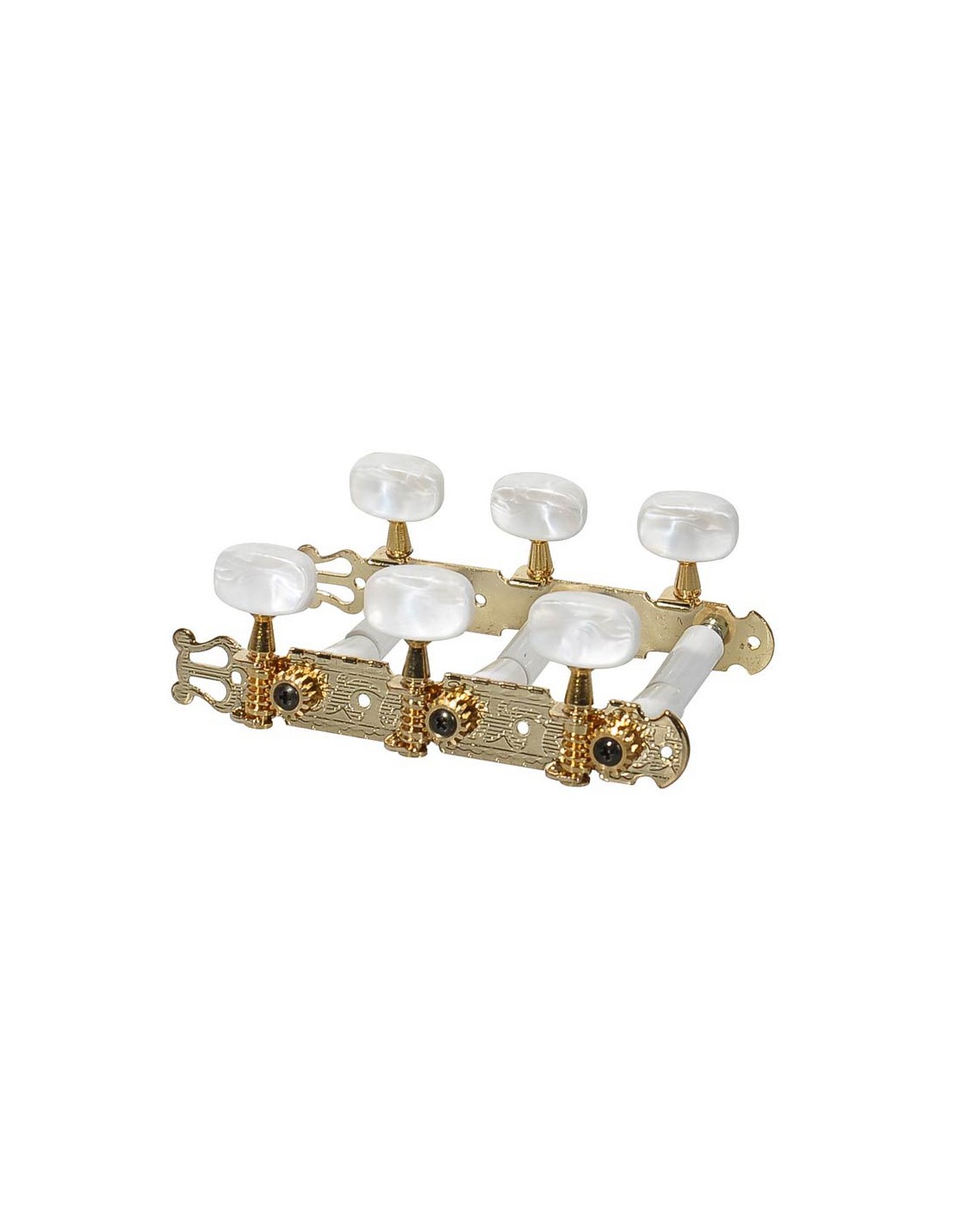 machine heads for classic guitar, nylon shaft, 3x left+3x right, 70mm, gold, pearloid buttons