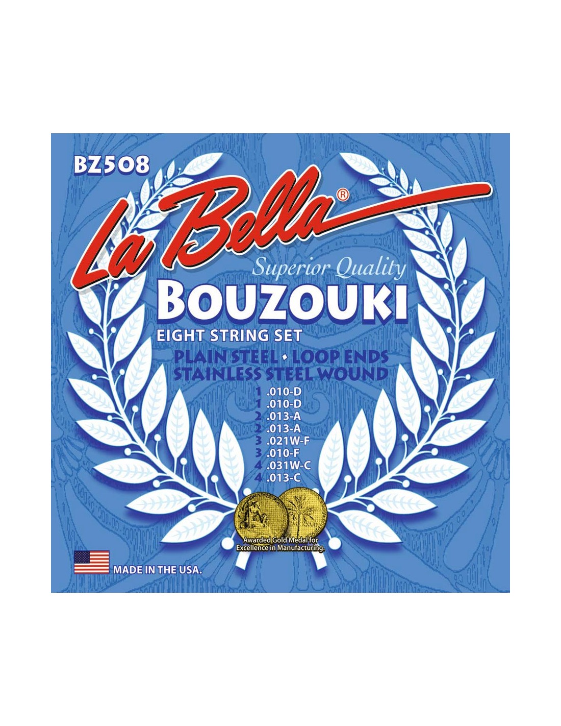 string set bouzouki, stainless steel wound, loop ends, 2x010-2x013-010-021W-013-031W