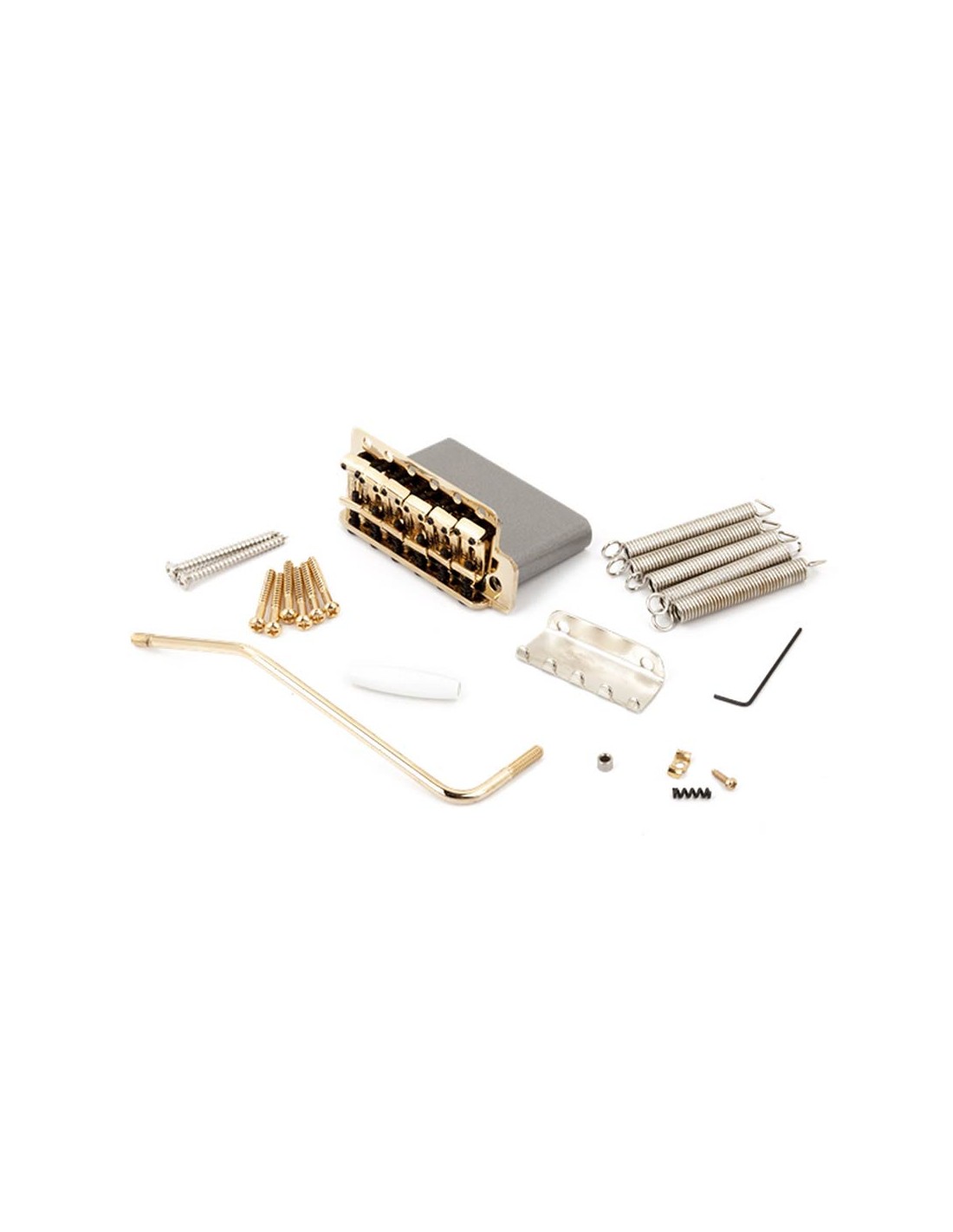 Vintage-style tremolo bridge assembly for use on American Vintage series Stratocaster models. Includes six "Fender"-stamped bridge saddles with mounting screws, tremolo claw, tremolo springs, tremolo arm with tip, tremolo arm tension spring, string tree, .050 hex adjustment wrench and mounting screws.