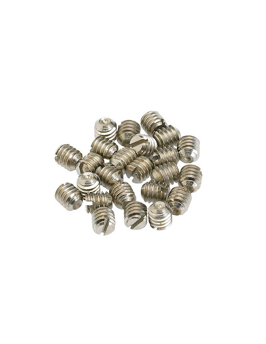 Set of 24 nickel set screws (8-32x3/16") for mounting most Telecaster®, Precision Bass® and vintage-style skirted amplifier knobs on solid-shaft potentiometers. Also fits American Vintage '62 Jazz Bass® control knobs.
