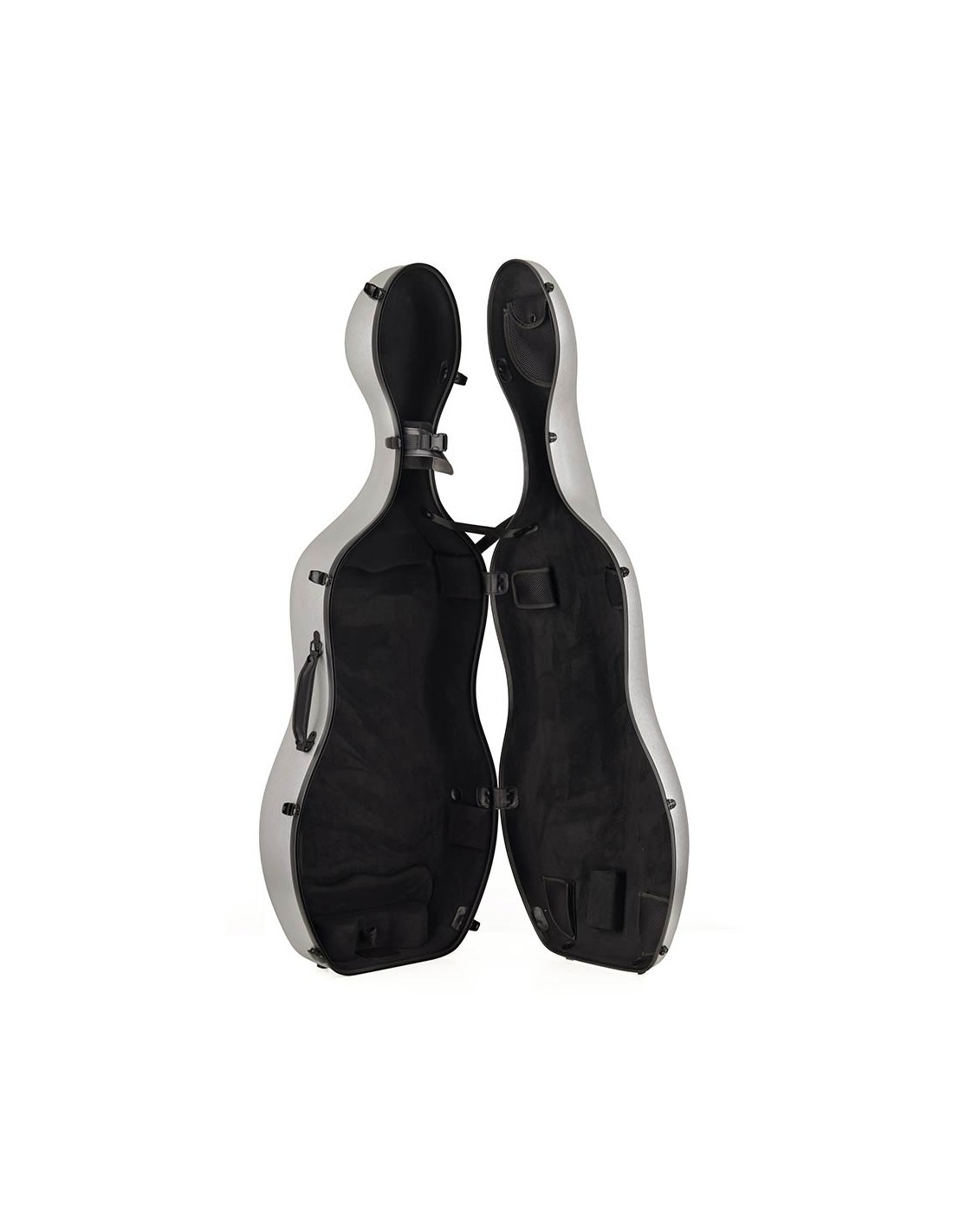 The CC-644 is a stylish cello case offering security to both musician and instrument. The sandwich structure of the outer layer ensures firmness and keeps temperature and humidity constant. The CC-644 is equipped with comfortable, wide carrying straps (with safety cables) and an extra handle at the top, useful for use in public transport. You close and open the case easily with the one-hand locks. The inside has a soft lining and sufficient reinforcement in important places. A handy cliplock with leather protection (for the strings) keeps the neck of the cello in place.
