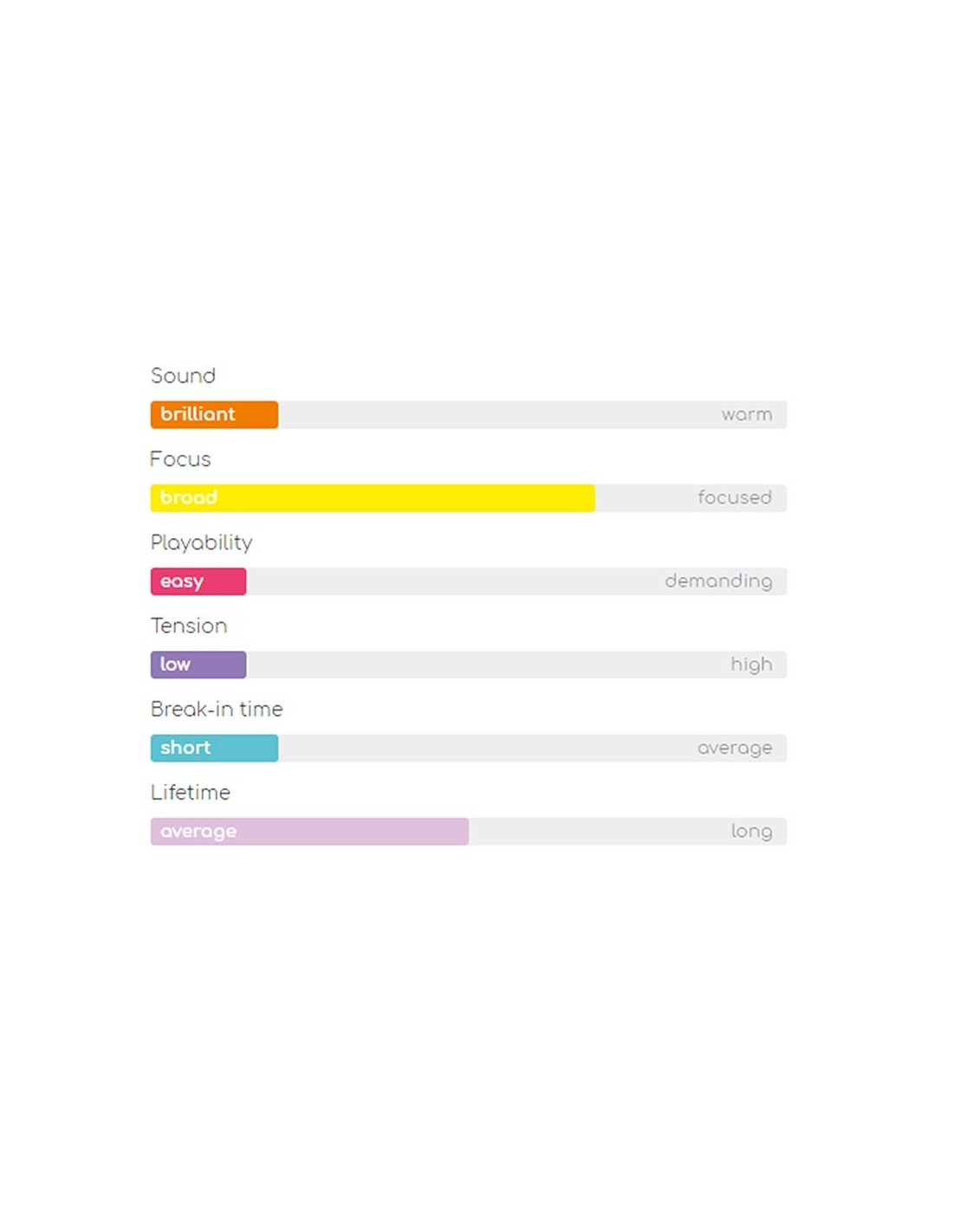 The experience of joy in playing is the essence of ALPHAYUE. The advanced synthetic core offers an unparalleled sound quality and a gentle feeling on your fingertips. The strings quickly perk up to their full potential and are instantly responsive.