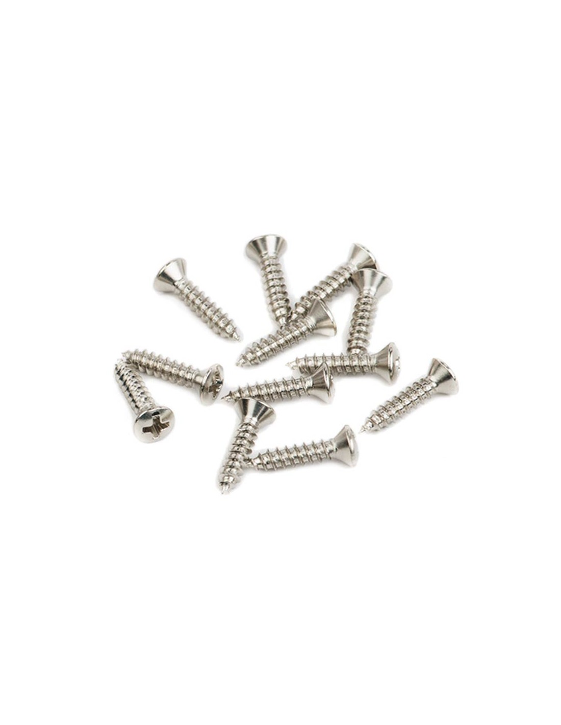Set of 12 replacement screws Nickel-plated sheet metal Phillips oval-head (4 x 1/2") Used for bridge cover mounting on most vintage and modern Fender instruments Used for tremolo cover mounting on vintage and modern Stratocaster® guitars