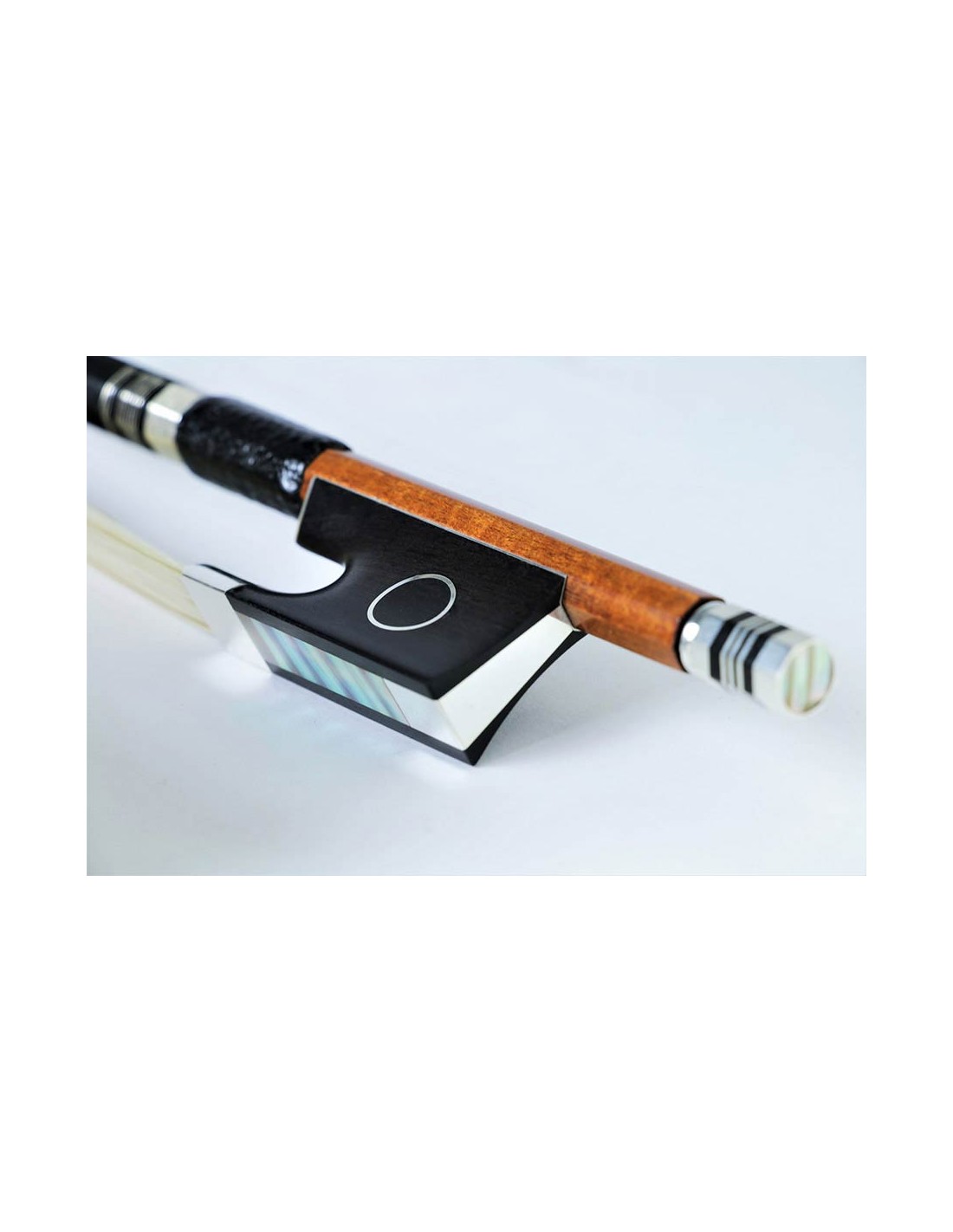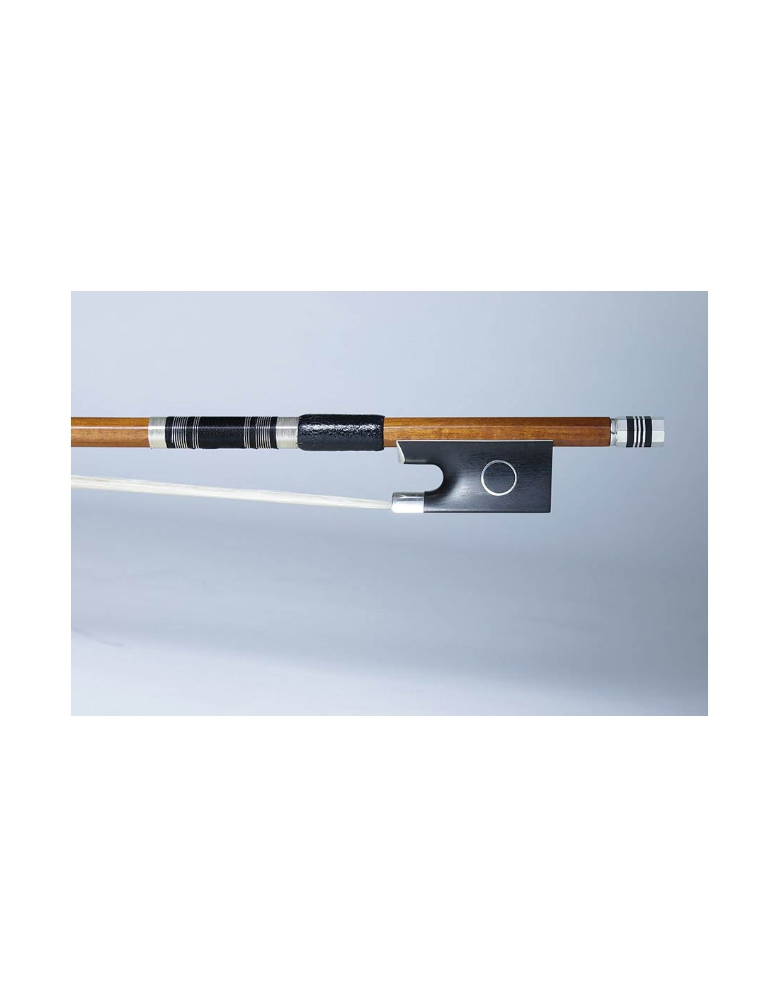 violin bow, 4/4, HQ pernambuco, round stick, full silver mounted with silver thumb protection