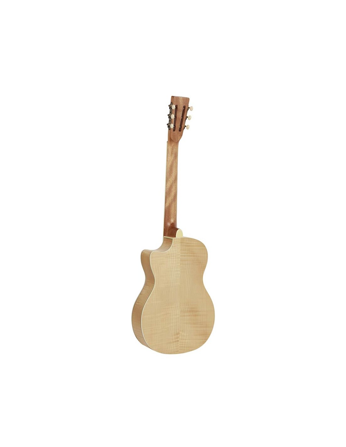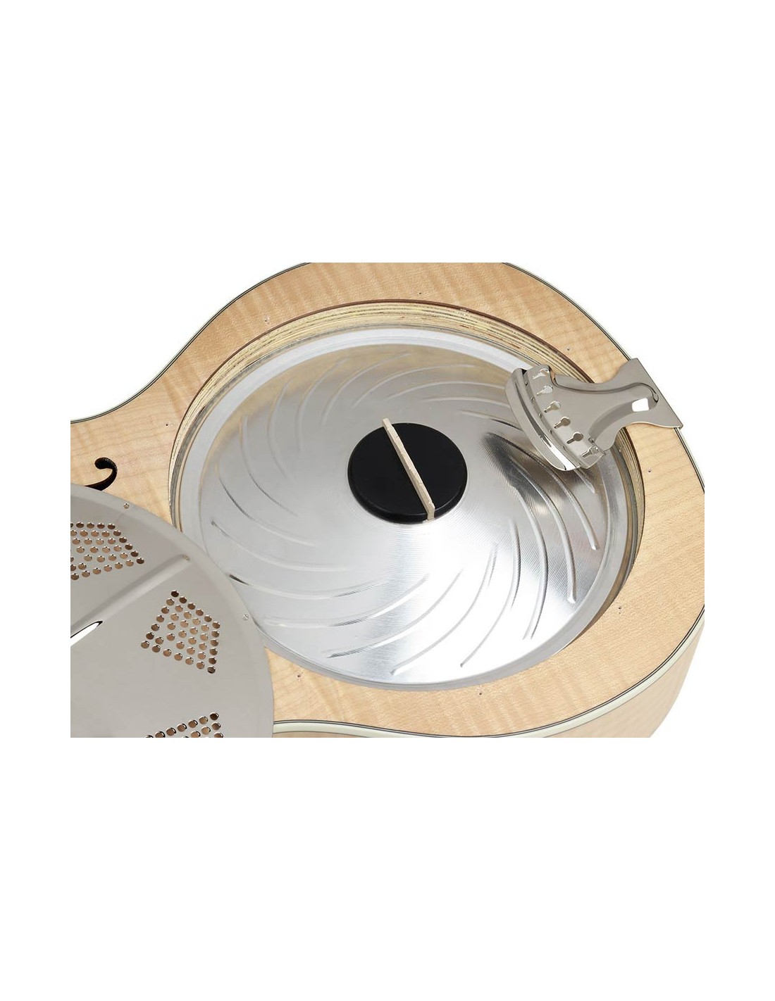 The Bantam Blazer is a maple body resonator guitar in parlor size. The beautiful flamed maple body and the 14th fret body connection are just begging to be played onstage. The neck is 46 mm wide at the nut enabling all playing styles. For onstage use we recommend installing the USA- RESO magnetic pickup for trouble-free amplification.