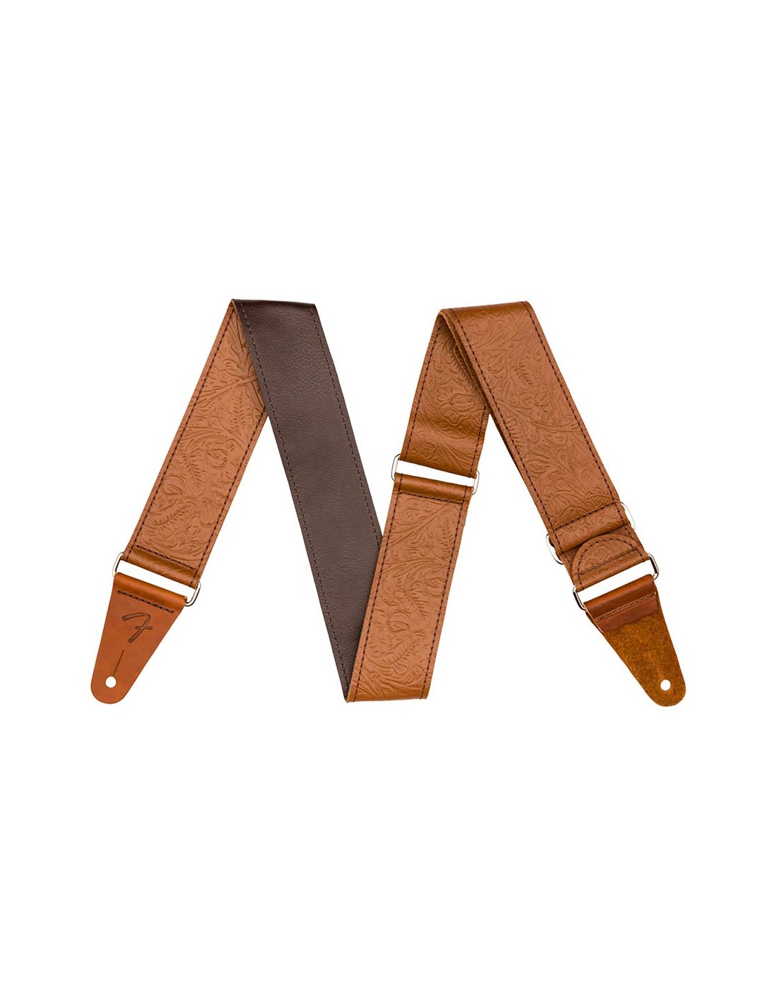 Inspired by the highly decorated straps favored by Western swing and country players, the Tooled Leather Strap brings classic style to any performance. Featuring an attractive floral pattern, this 2-wide strap is designed for comfort, quality and aesthetics. The premium leather cone ends feature an embossed F logo to maintain the theme. The silver nickel slider allows the strap to adjust from 42-52 in length to accommodate players of any stature.
