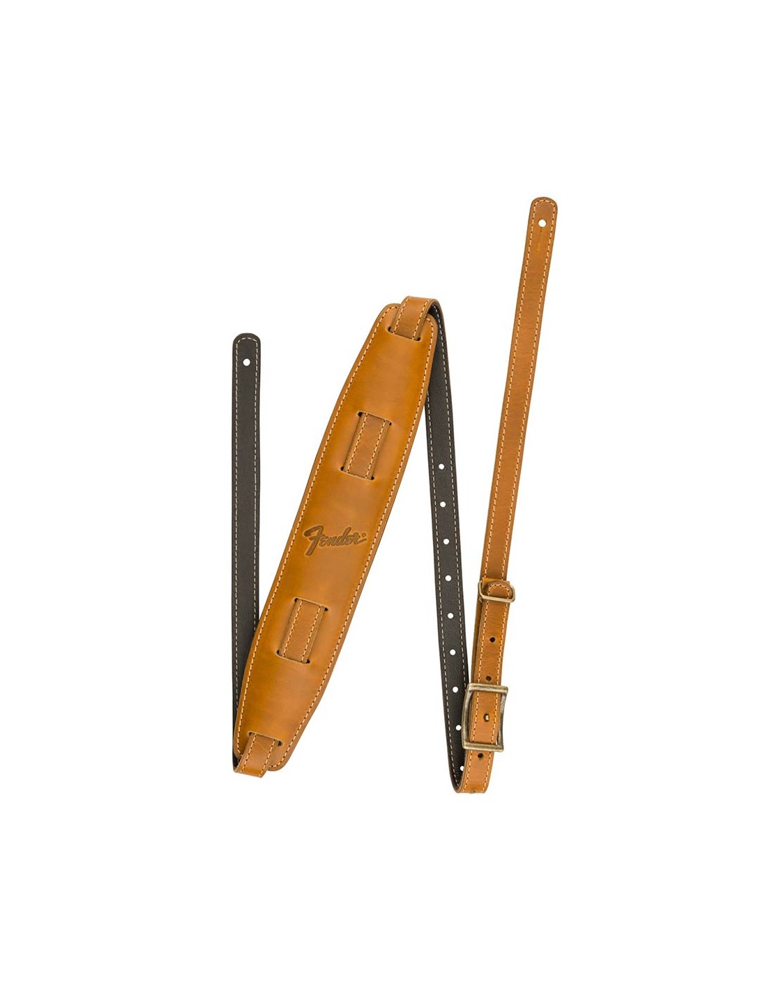 Featuring smooth, premium top leather with a soft padded leather backing, the Mustang saddle strap is a modern interpretation of our classic vintage Fender design. Full-grain, rich leather undertones ensure this strap only gets better with time while the fixed brass metal keeper secures your straps tail so it doesnt hang once adjusted. Available in both standard and long lengths to fit players of any stature.