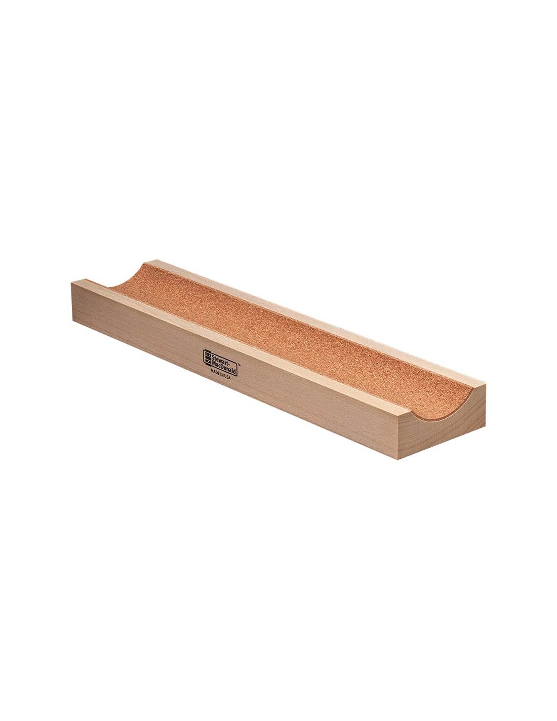 Wooden support with specially contoured and lined it cork to get a firm, non-marring, non-skid hold on the neck.