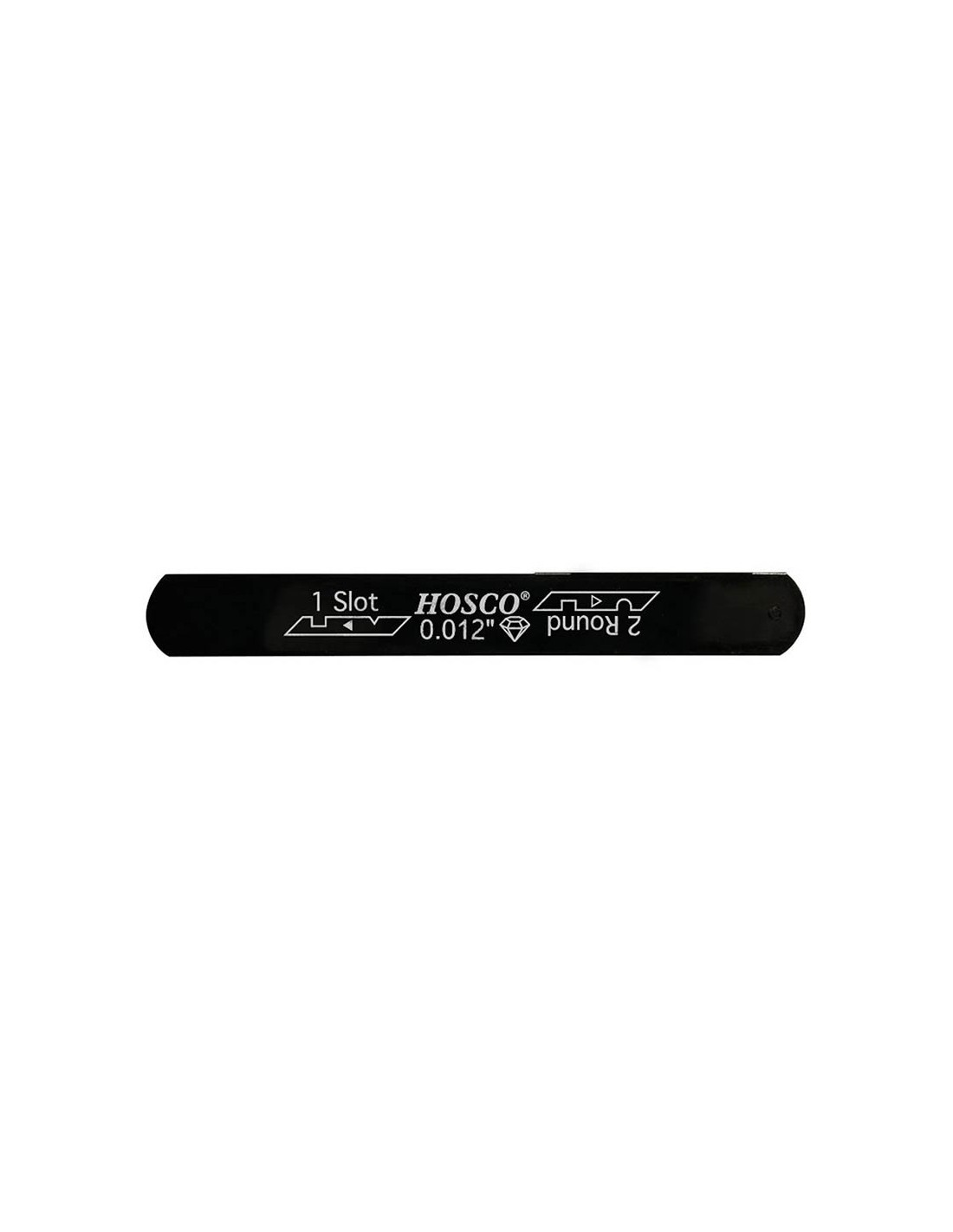 Hosco Diamond Combo Black nut files help you to do a nut filing job easily, quickly and precisely. This file has two usable sides: one side is identical to the black nut file, the other side is a round #600 diamond line file. You can use it to file your slot as usual, flip the file around in its holder and use the diamond file side to create a smooth and rounded slot very quickly.