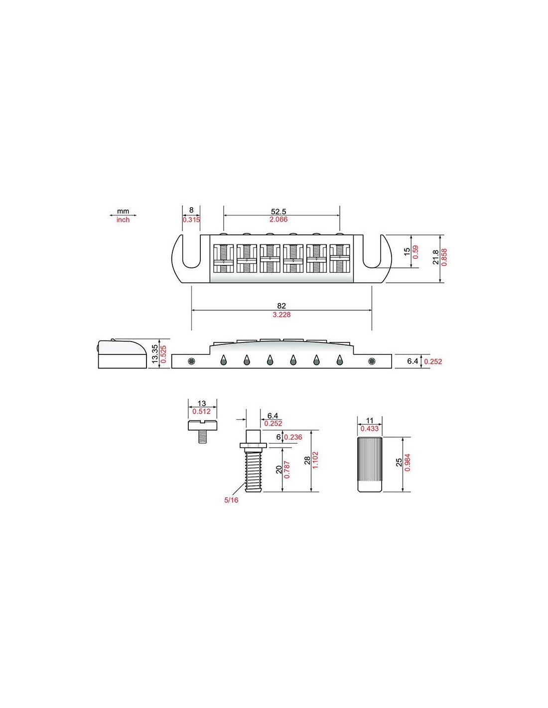 - retrofits USA G-style guitars fitted with stud mount bridges with standard center stud spacing without modification