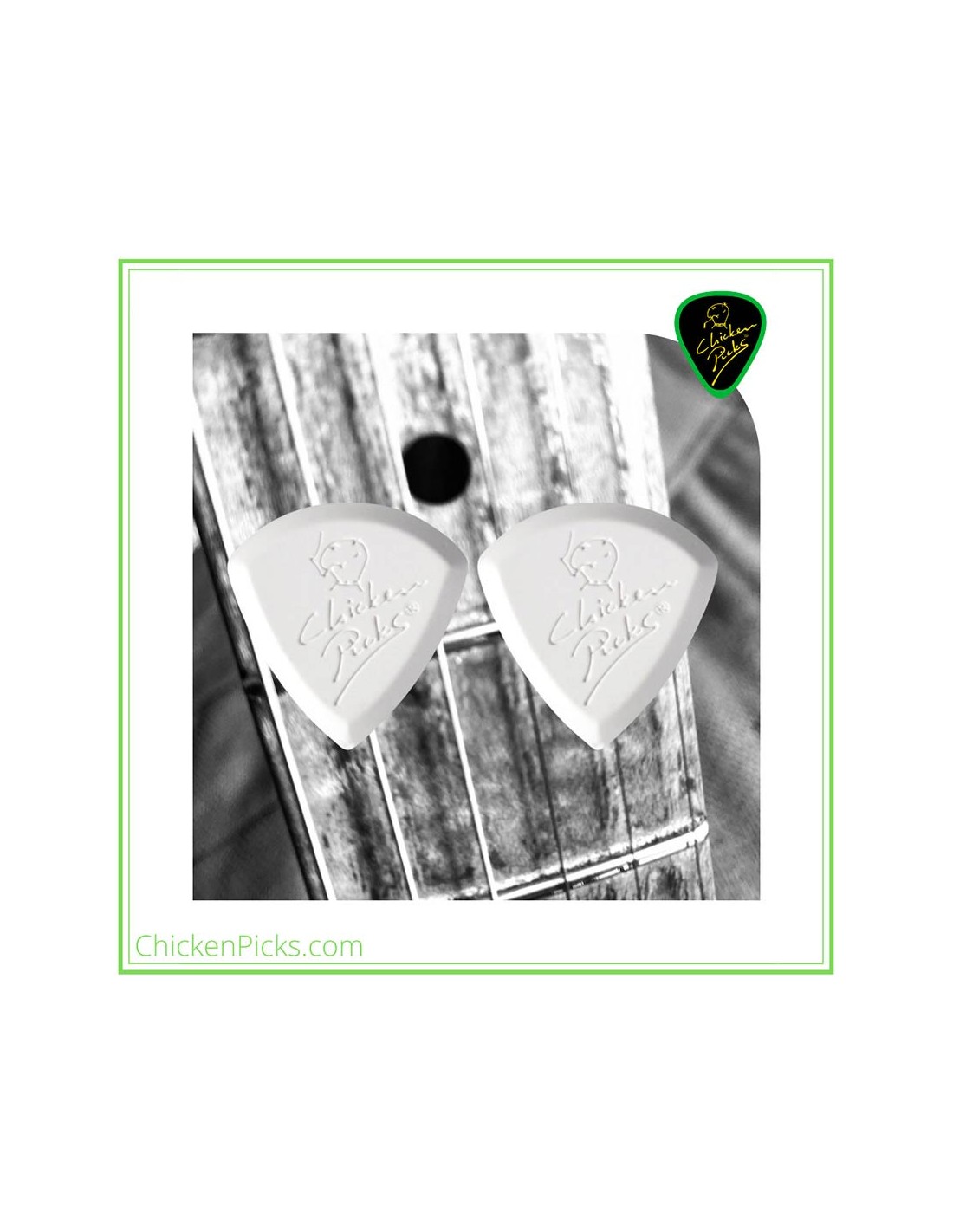 There is nothing finer or more reassuring than having your own special pick that one that you always reach for because it plays so good! ChickenPicks® are designed to be that go-to pick from the get-go. Though the material is extremely durable, it does wear just a little, and in just the right way. Thats why after a while, a ChickenPicks® comes to fit perfectly in your grip and in your musical style. This is a pick that will grow on you, and grow with you. The ChickenPicks® advantage is simply this: a hand-made, durable, and personal pick that brings a lot more of YOU and your character into the music you play. This is something that an average, thin, throw-away guitar pick can never offer.