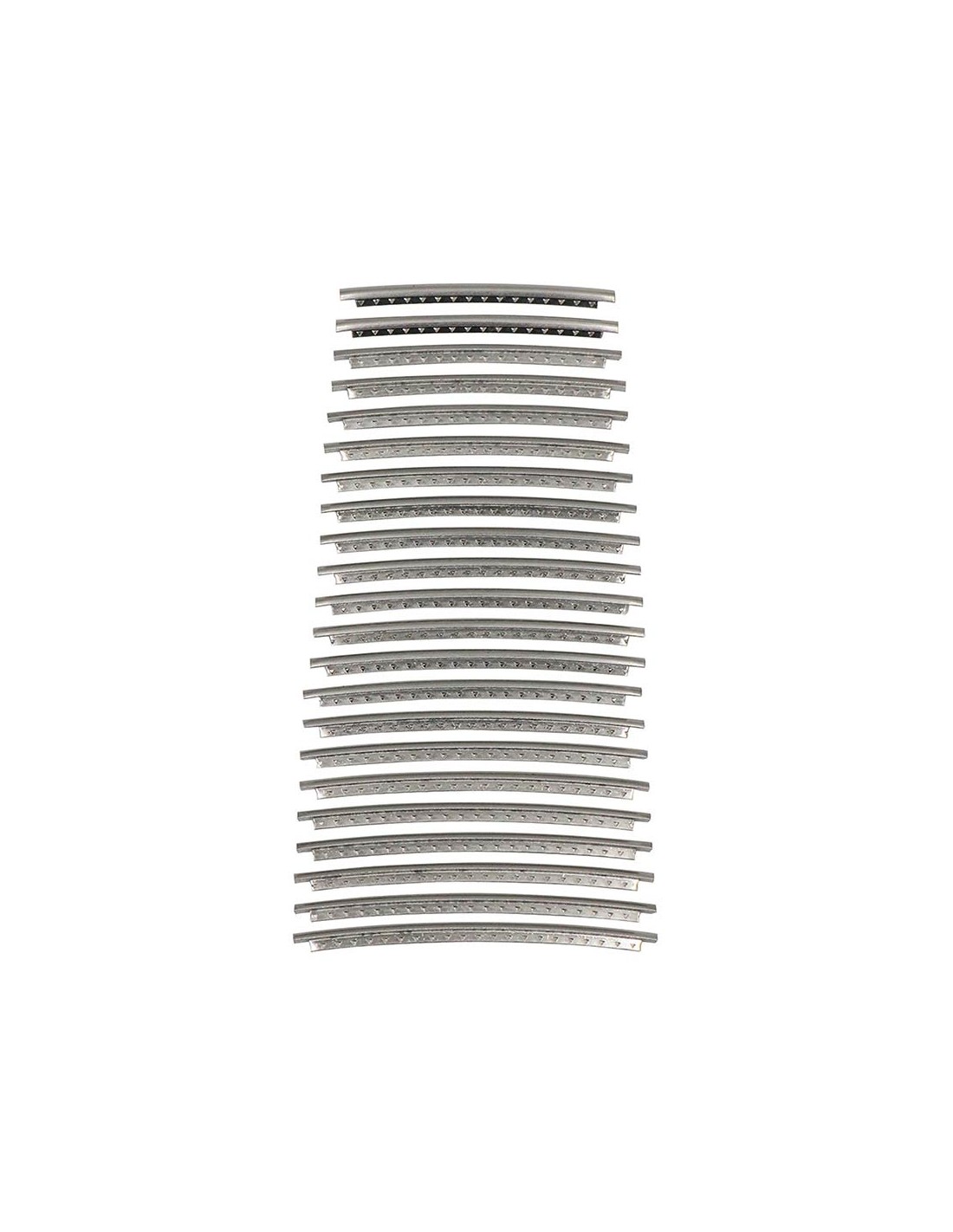 Precut stainless-steel fretwire, sold as a set of 24. Each fret of the following precut stainless-steel fretwire is cut based on a standard fretboard (43mm at nut / 53mm at 12th fret) and has an extra length by 0.5mm.