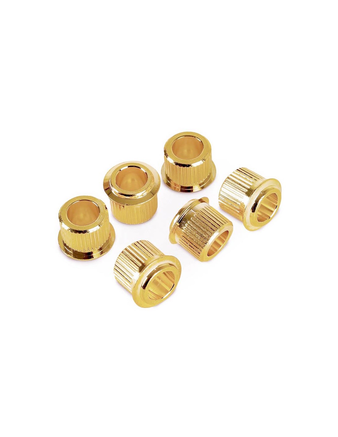 For installing Gotoh SD or SE series machineheads to 10 mm diameter peg holes. Set of 6 pcs, round top, gold.
