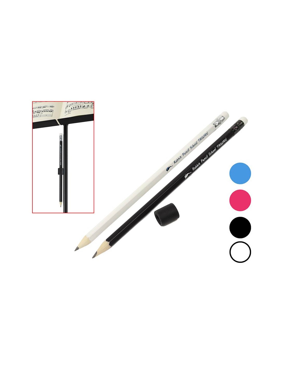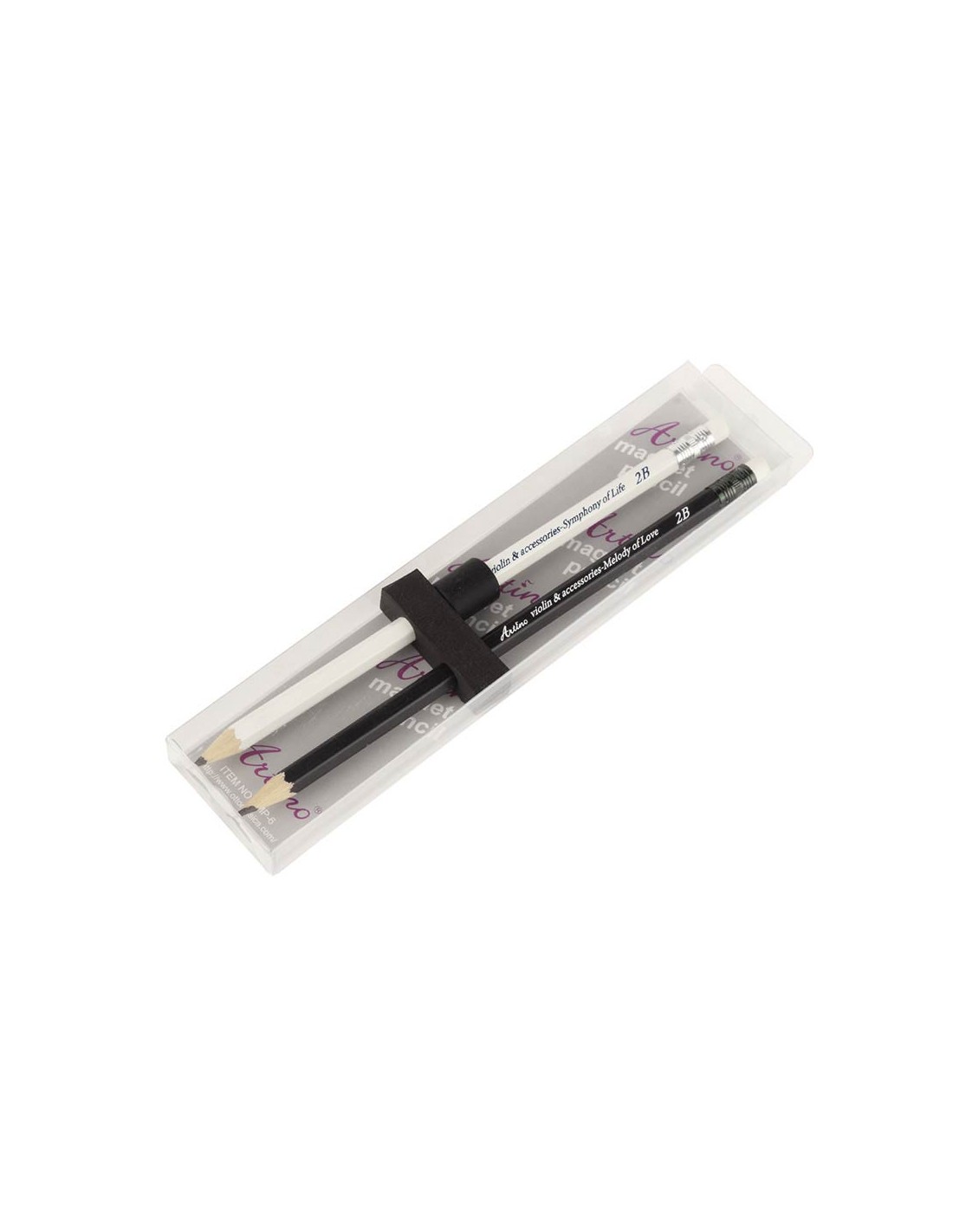 set of pencils with eraser, black and white, 2B, includes one removable black magnet