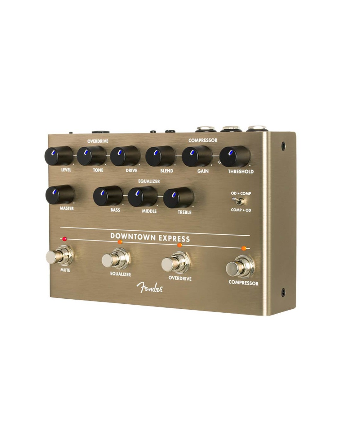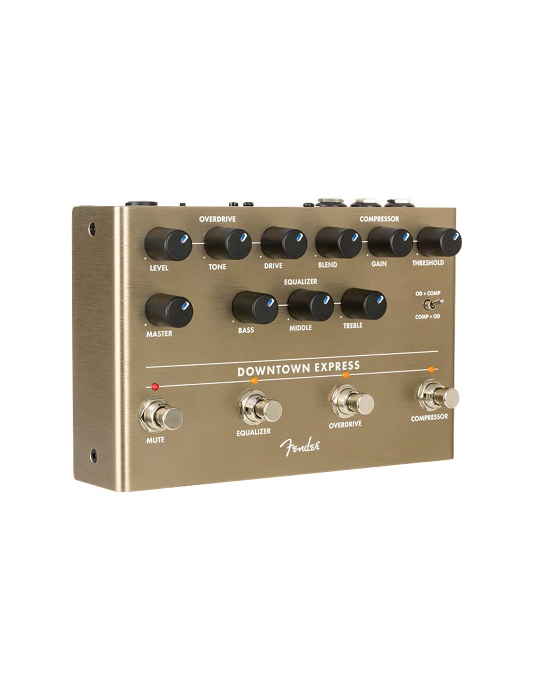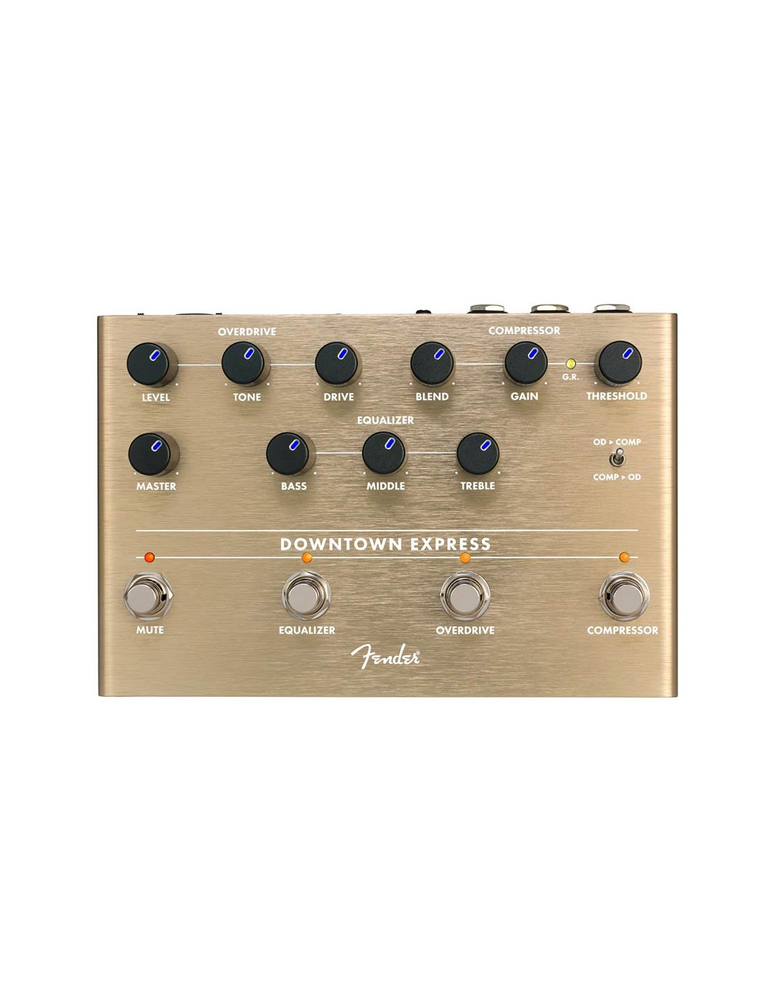 Your one-stop shop for bass tone-shaping, the Downtown Express bass multi-effect puts everything you need for killer bass tone right at your feet. All the bass essentials are there compressor, 3-band EQ and overdrive each switchable on its own, or you can use the Mute switch to kill the signal for silent tuning. The Direct Output makes it easy to integrate this pedal into any performance situation stage or studio. We recognize that a truly powerful signal chain needs to be flexible, so we included a switch that lets you reorder the compressor and overdrive circuits to taste.