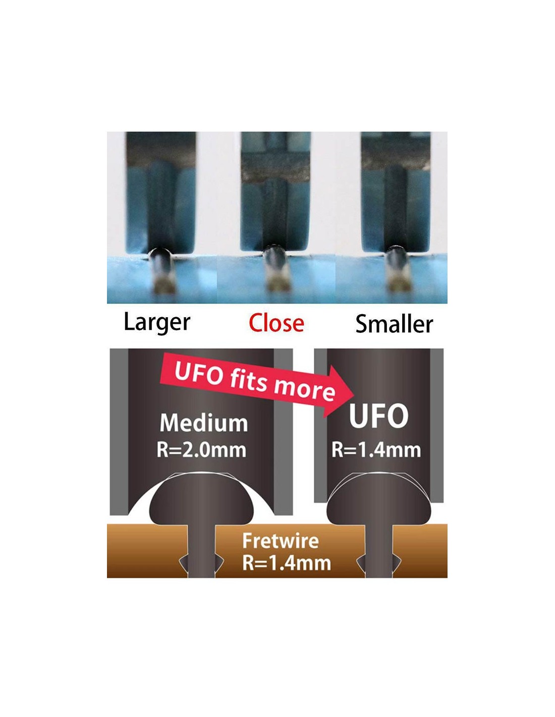 For those aiming at a more accurate crown shape during fret work, Ultimate Fret crown Optimizer (UFO) would be the preferred choice. It can help you restore the crown as close as the original shape in minimal strokes.