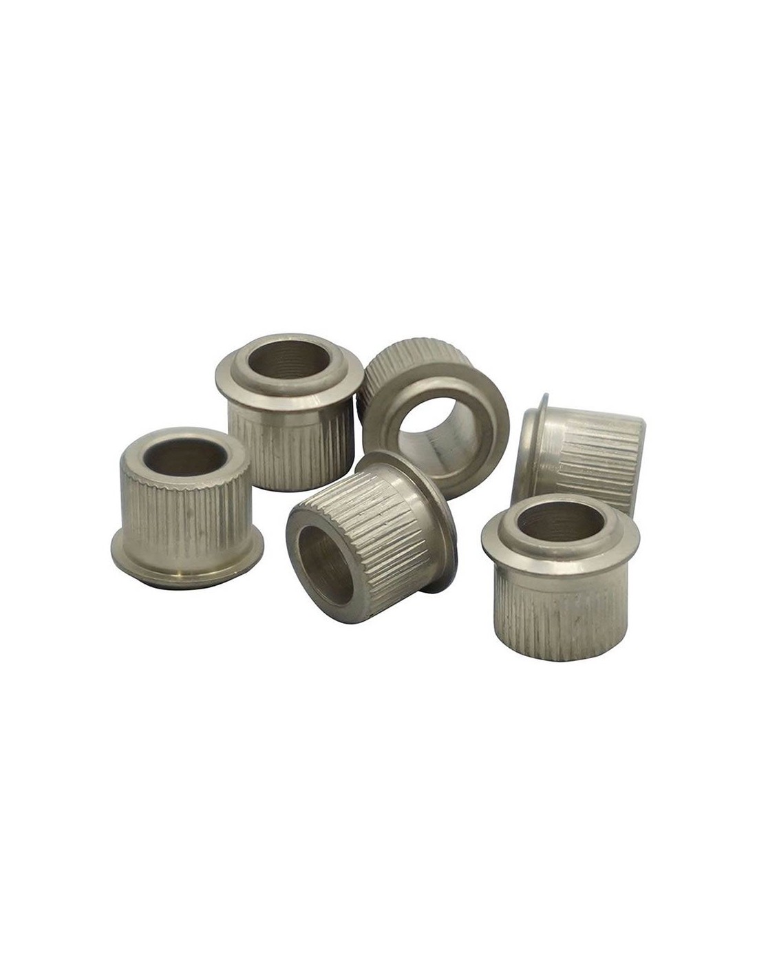 For installing Gotoh SD or SE series machineheads to 10 mm diameter peg holes. Set of 6 pcs, round top, nickel.
