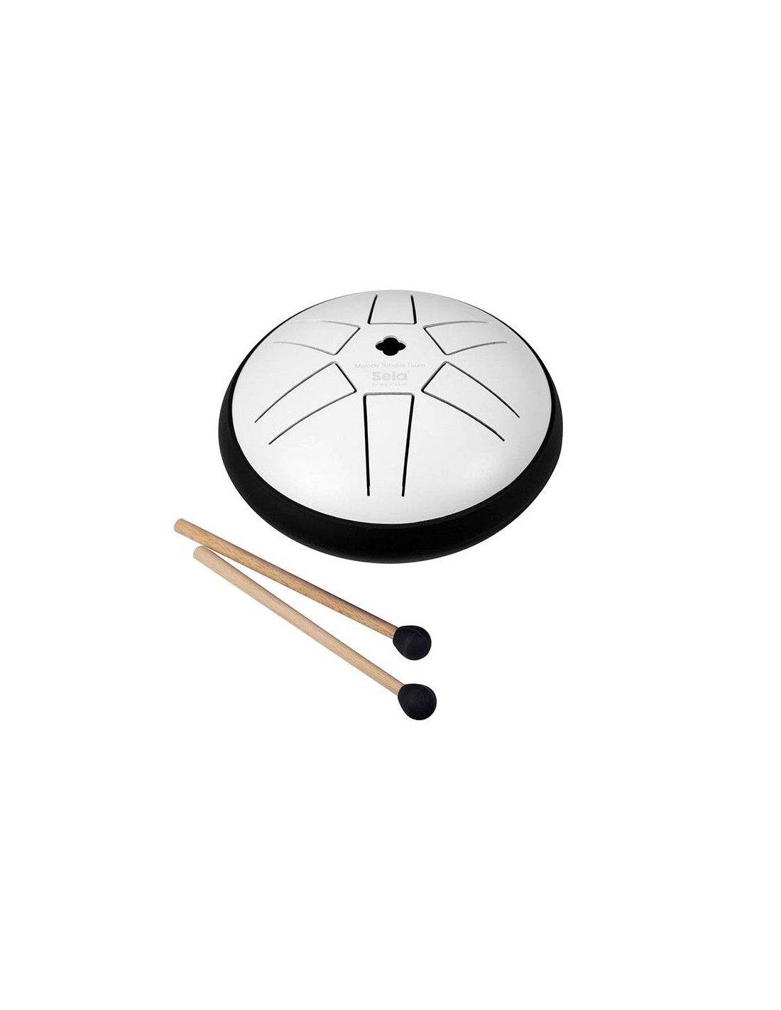 The Sela Melody Tongue Drum 5.5" B5 White is a handy steel tongue drum and with a diameter of just under 14 centimeters the smallest model in our range. With its warm and soothing sound, it is suitable for relaxation in everyday life as well as for the early musical education of children. Since all six tone fields of the Sela Melody Tongue Drum 5.5" B5 White are on the pentatonic B scale, a harmonic melody is always created when playing without any "wrong" notes. Therefore, this instrument is recommended not only for experienced music lovers and professional sound therapists, but especially for beginners with no previous musical knowledge.
