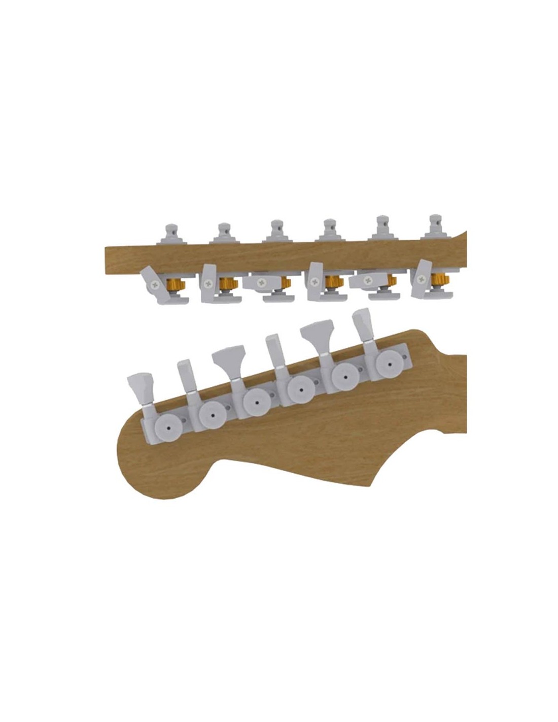 Open gear tuners come with HS buttons by default. Enclosed tuners come with Hex buttons by default. Lots of button options are available