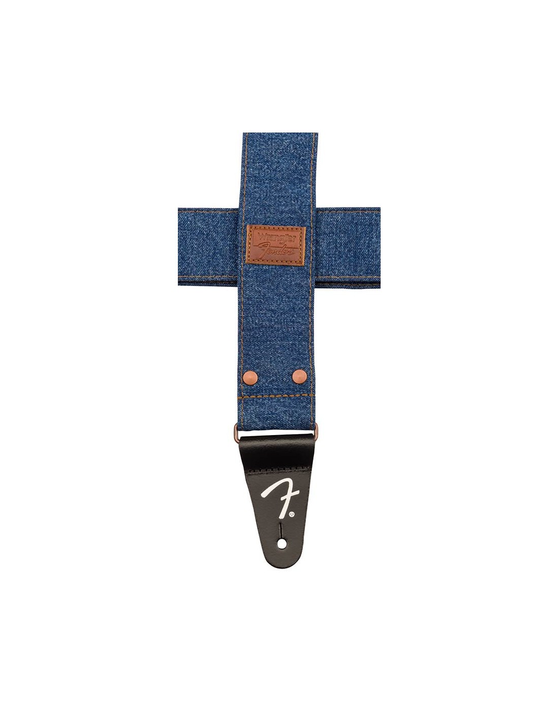 A strap that fits as comfortably as your favourite pair of jeans, the Fender© x Wrangler© Denim Straps are the perfect way to add more flair to your Fender. True to the iconic pocket design, these straps feature gold stitching, custom leather patchwork, and copper rivets and hardware.
