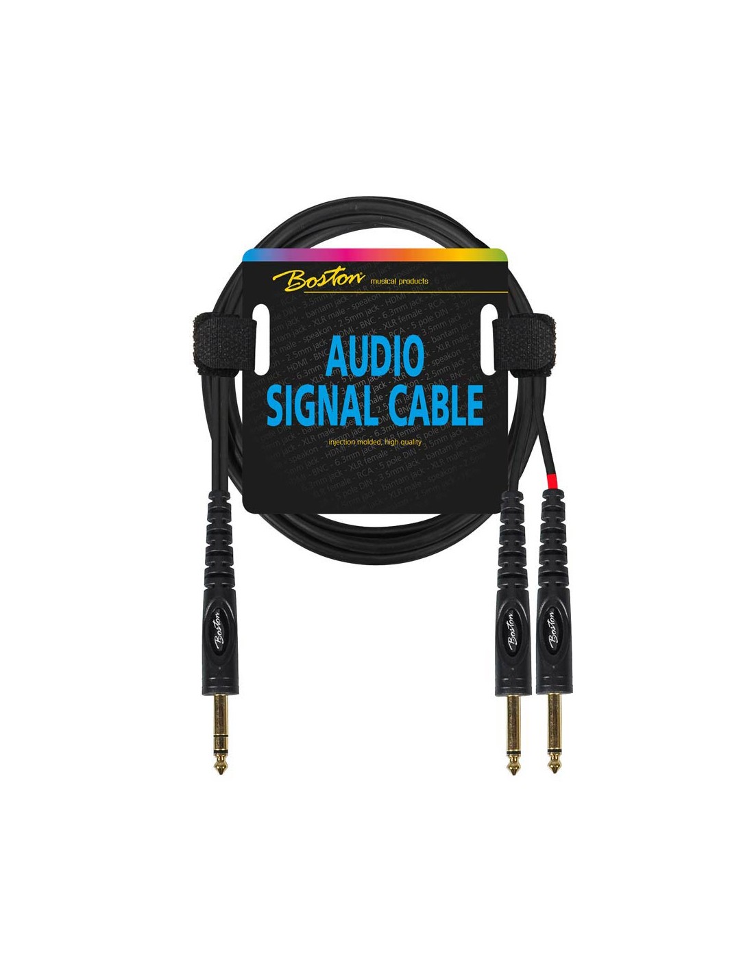 audio signal cable, 2x 6.3mm jack mono to 6.3mm jack stereo, 3.00 meter