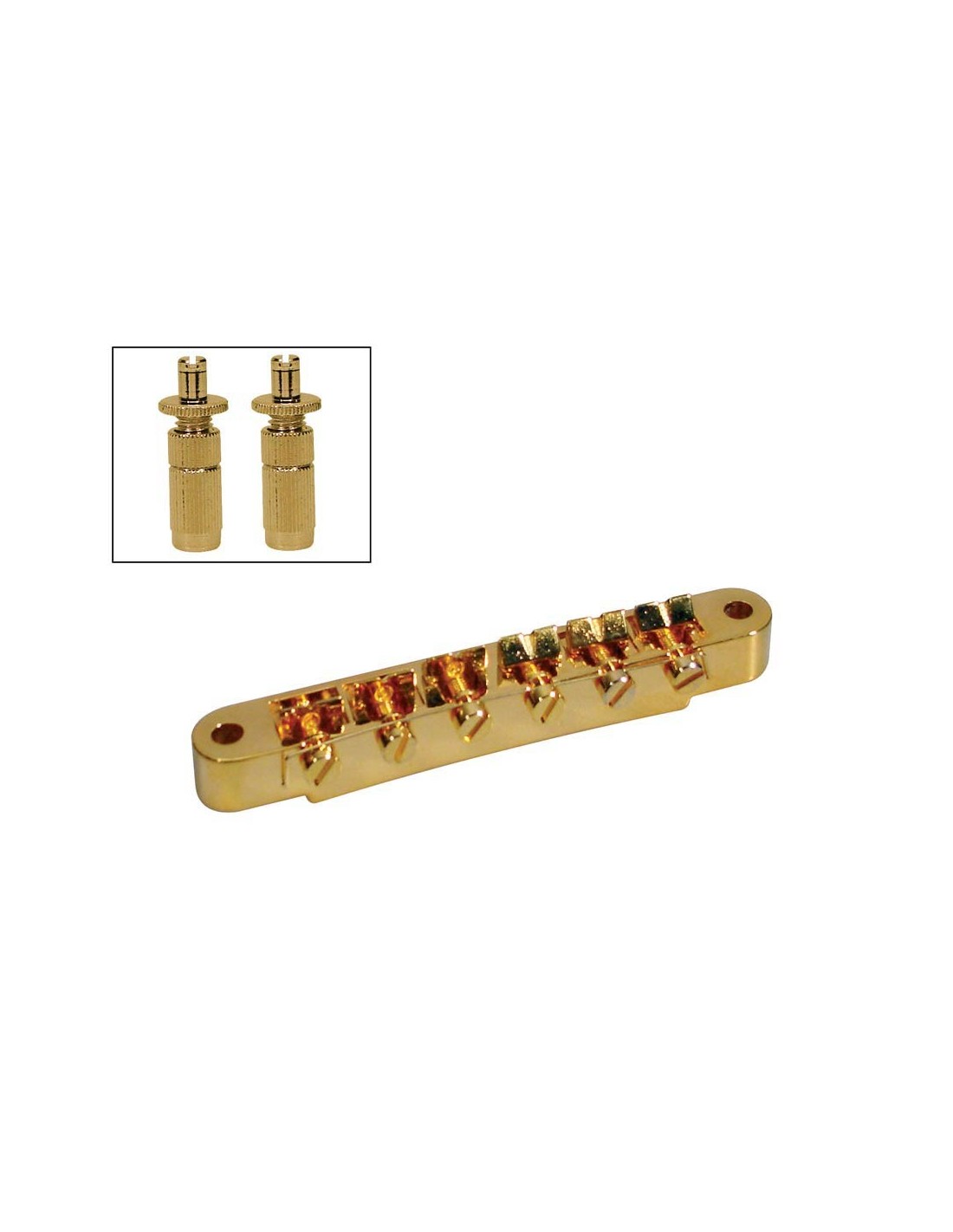 bridge for e-guitar, tune-o-matic, stud spacing 73,5mm, stud diam 6,0mm, gold