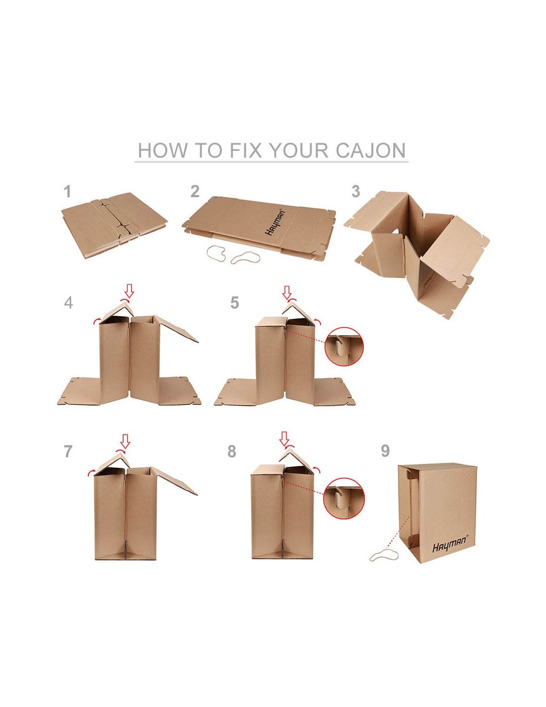 DIY cardboard cajon, 33x31x44cm, fixed snare, flat packed
