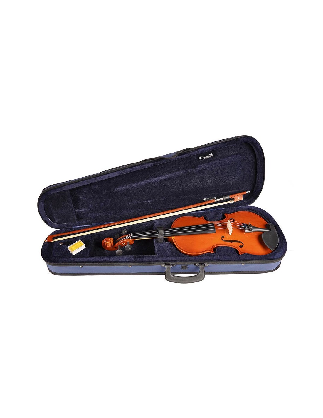 violin outfit 1/2, laminated, nitro varnish, blackened hardwood fittings, finetuner tailpiece, case