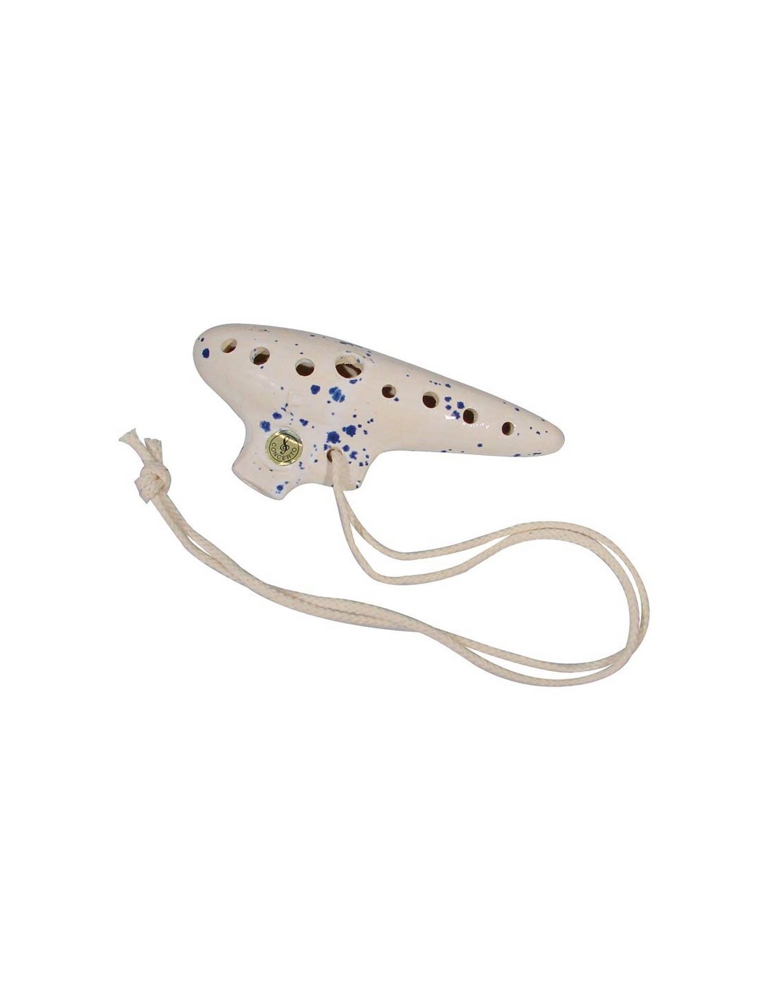 ocarina, white-blue ceramic, with bag, key: F, 15 cm