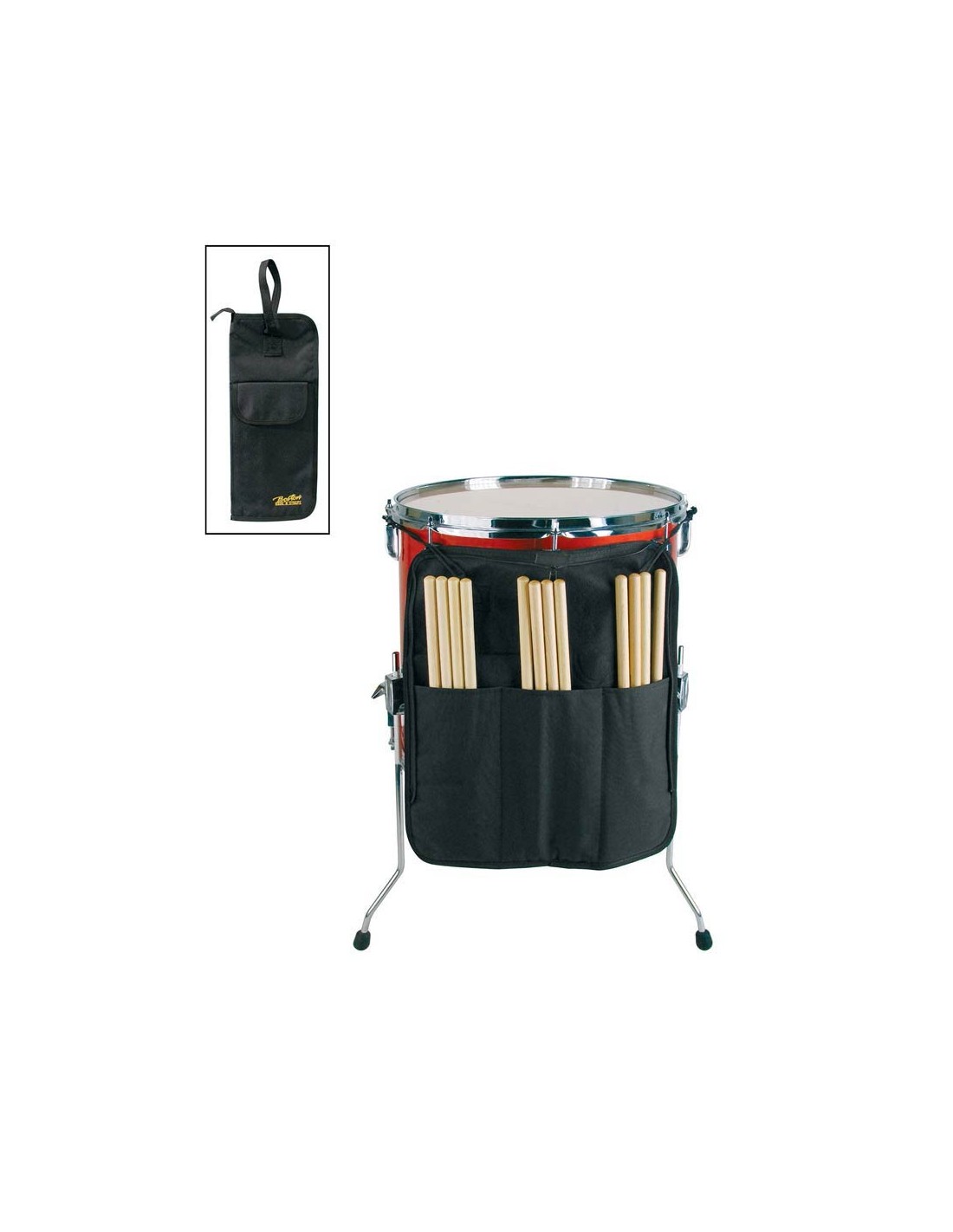 drumstick bag, with accessory pocket and floor tom mounting hooks
